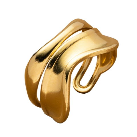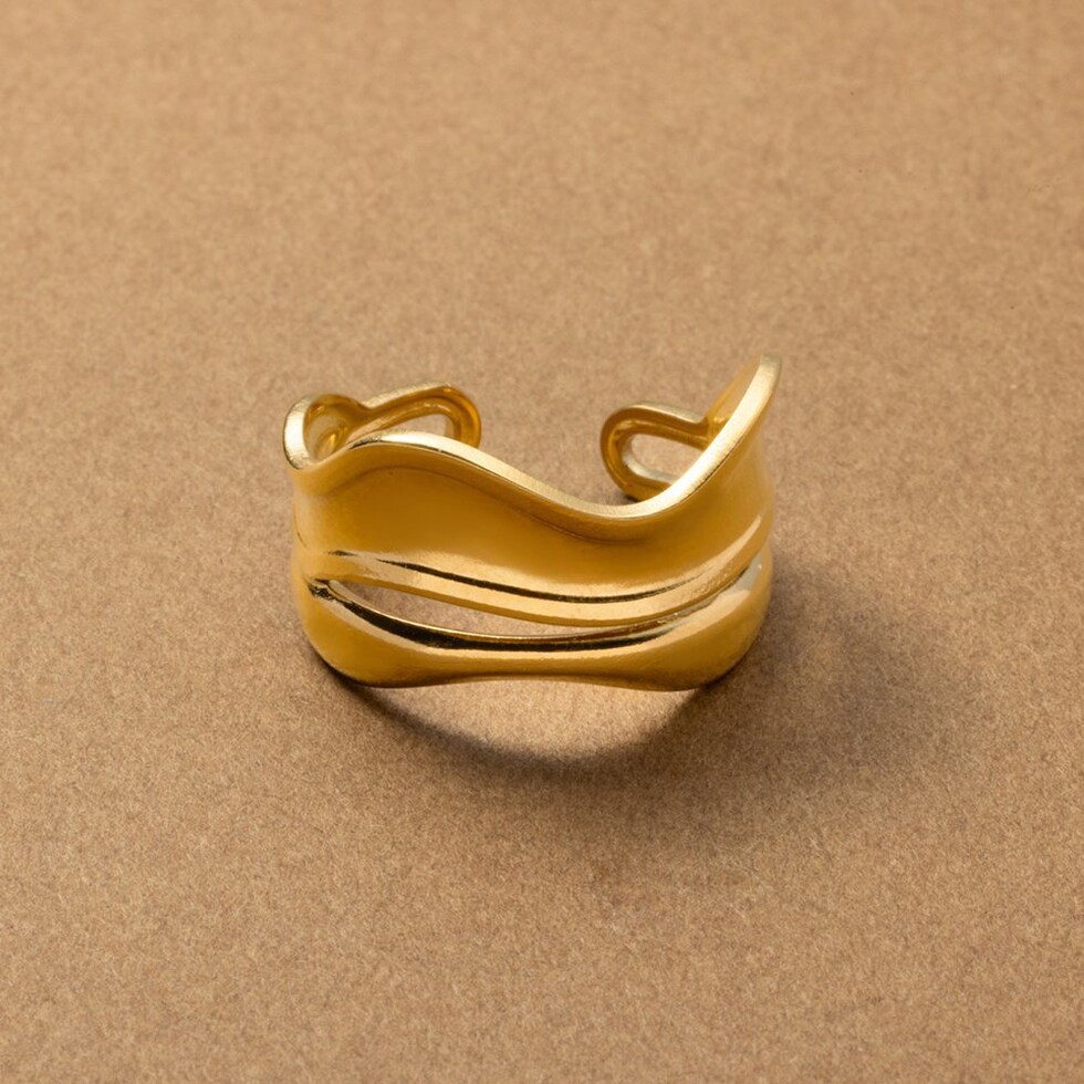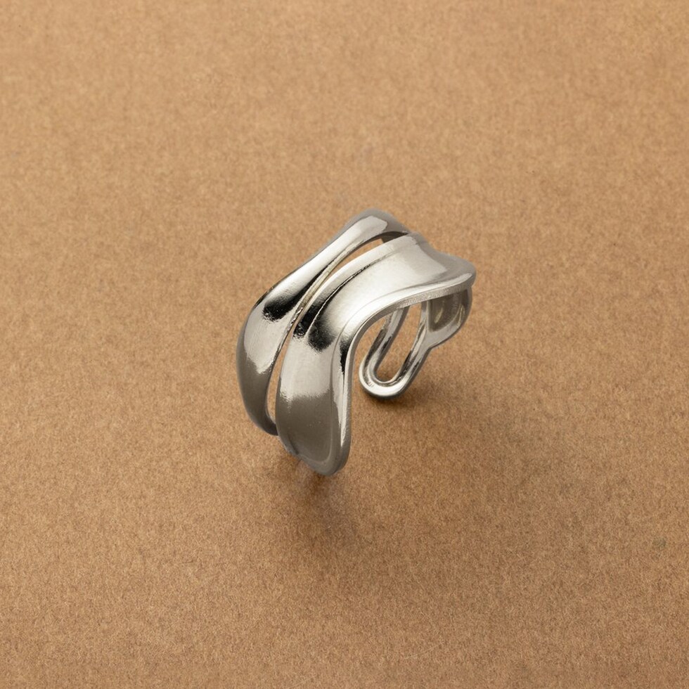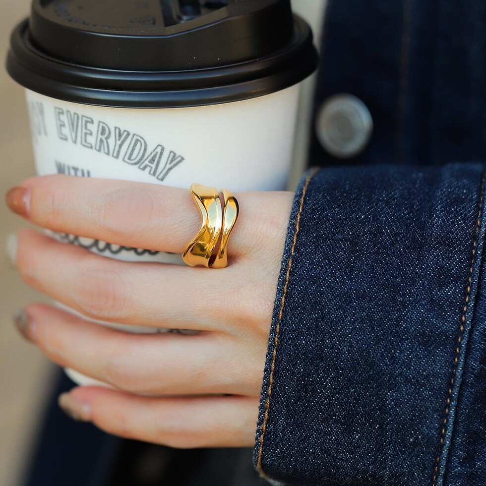 ウェーブラインがこなれ感溢れるワイドオープンリング。主役級の存在感がありながらも緩やかな曲線ダブルラインが洗練された手元を演出。一点投入するだけでコーデをグッと格上げしてくれるアイテムです。