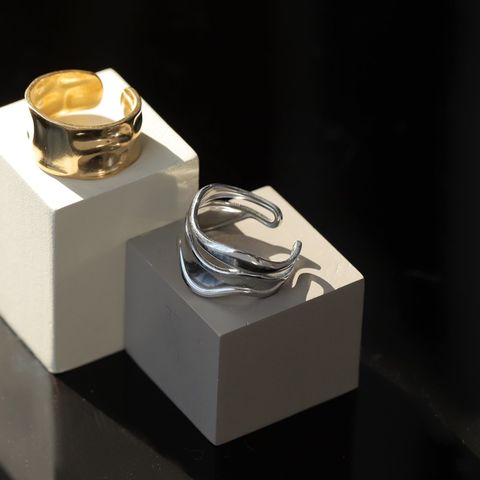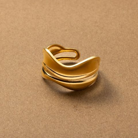 リング 指輪 ステンレス 金属アレルギー サージカルステンレス レディース つけっぱなし ニュアンス ウェーブ ワイド 幅広 曲線 ダブルライン オープンリング cream dot ゆうパケット [ゴールド_15号]
