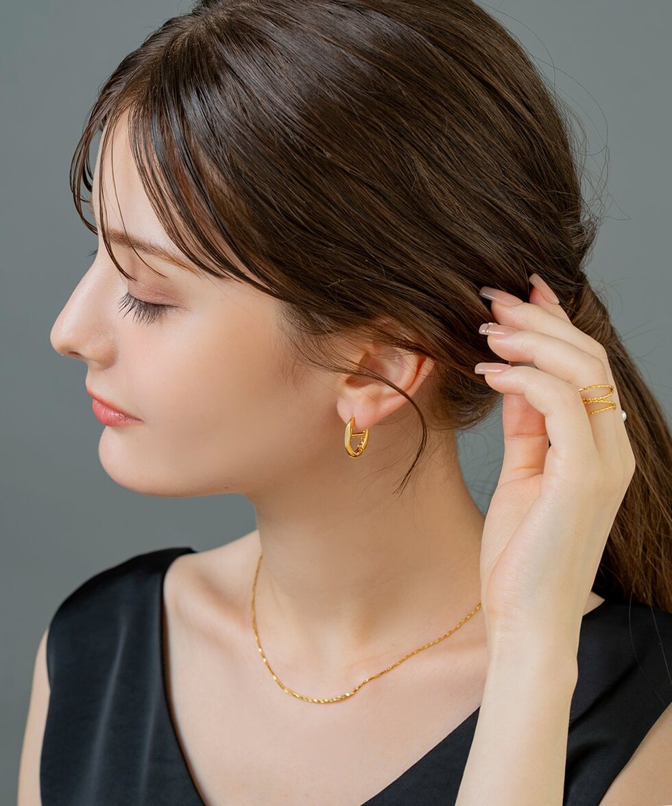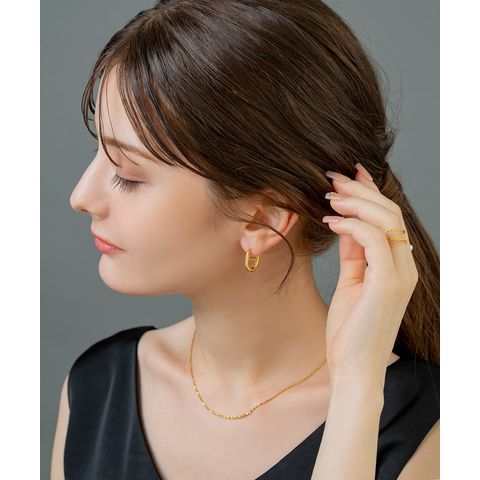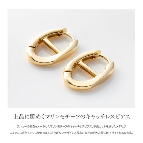 アンカーの鎖をイメージしたマリンモチーフのキャッチレスピアス。多面カットを施したメタルがニュアンス感たっぷりに艶めきます。さりげないデザインと程よい大きさが大人顔に仕上げてくれるひと品。
