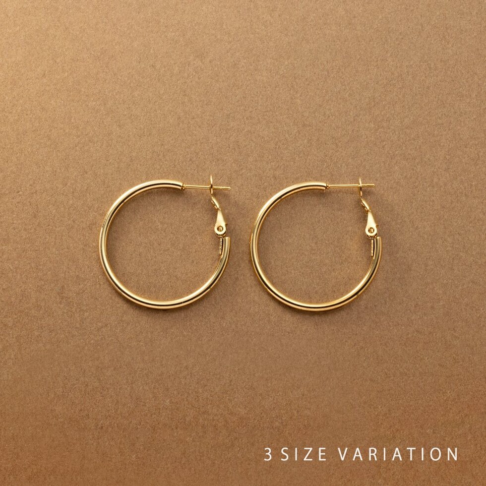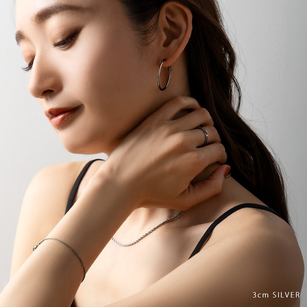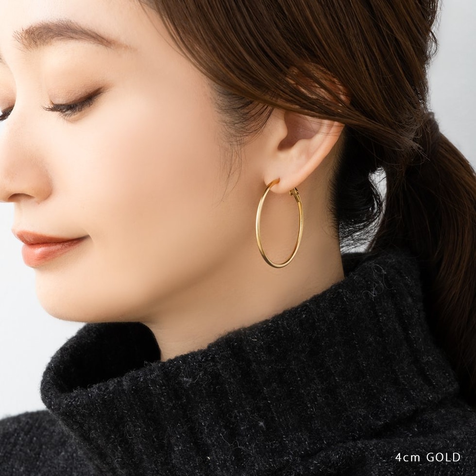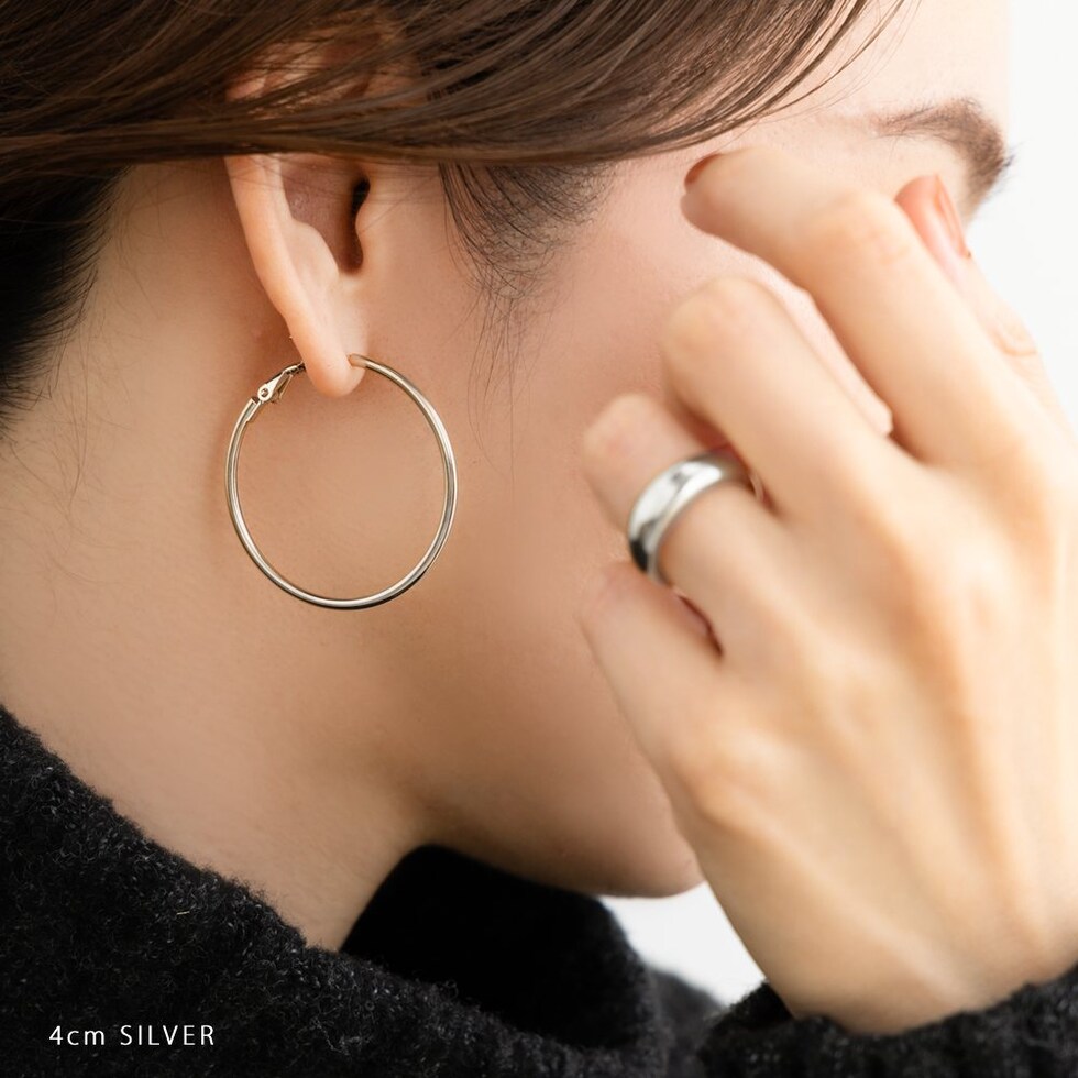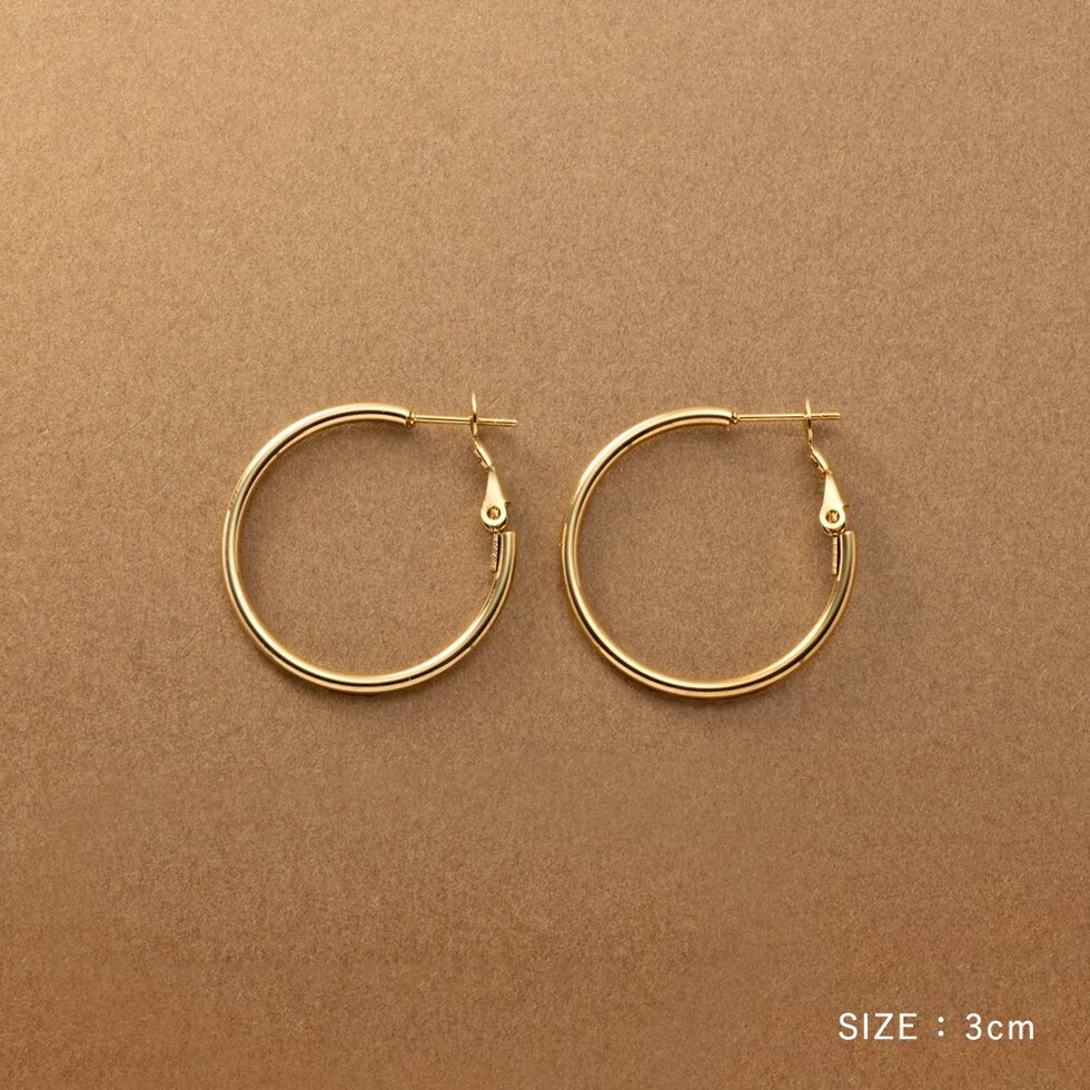 選べる3サイズのシンプルなキャッチレスフープピアス。どんなスタイルにもマッチするフープピアスは、流行に左右されず長く使えるアイテム◎定番のデザインも目を惹くサイジングで新鮮な雰囲気をプラスします。長時間の着用にもオススメなステンレス製とお好みで選べる3サイズ展開の嬉しいひと品です。