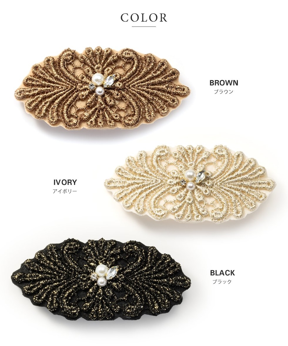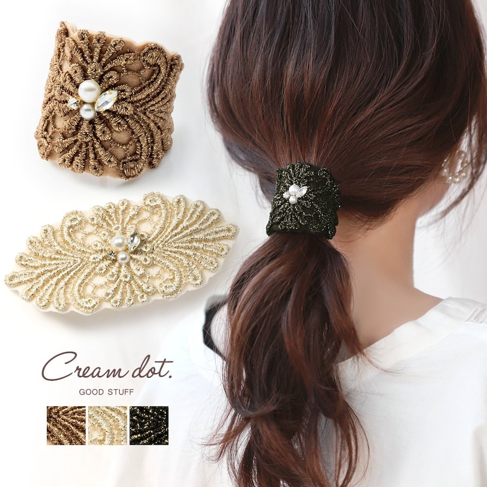 ヘアアクセサリー レディース ポニーフック ヘアフック ヘアカフス ヘアゴム 髪留め まとめ髪 ビジュー パール スカラップ風 刺繍 ワイヤー 曲がる ブラック cream dot ゆうパケット [アイボリー_ワンサイズ]