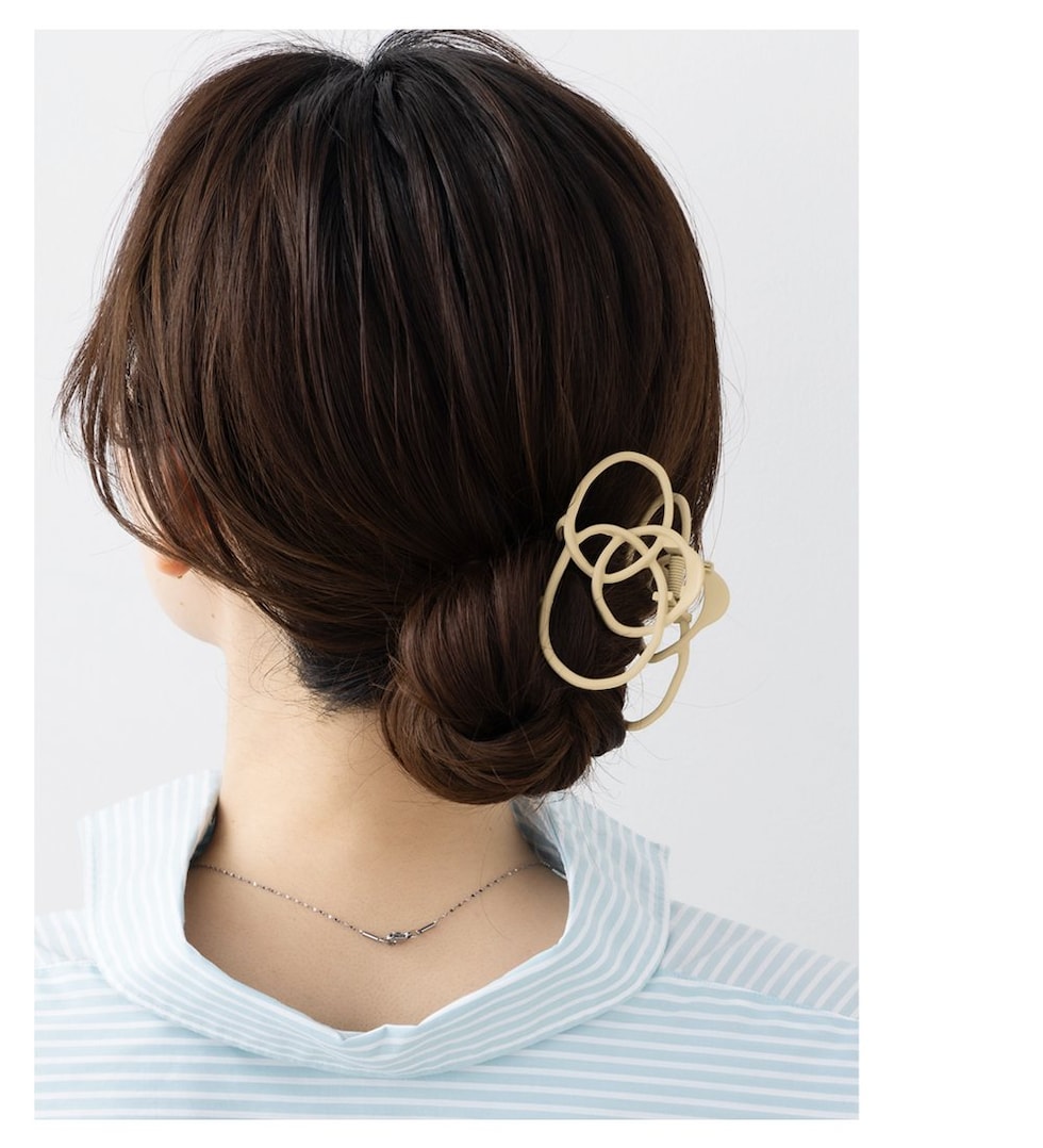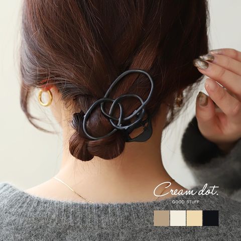 ヘアアクセサリー レディース ヘアクリップ しっかり留まる バンスクリップ 手書き風 変形 毛量 多い 多毛 髪留め まとめ髪 マット 艶消し メタル ループデザイン 重厚感 ブラック cream dot 定形外郵便 [モカ_ワンサイズ]