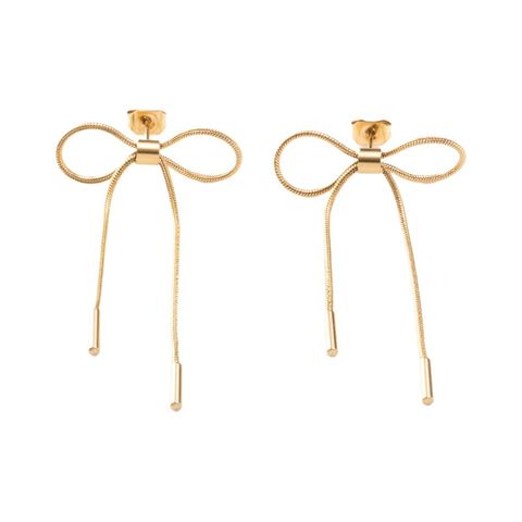 ピアス ステンレス 金属アレルギー サージカルステンレス レディース つけっぱなし リボン アシンメトリー アシメ スネークチェーン 揺れる cream dot ゆうパケット [ゴールド_ピアス]