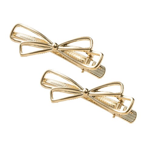 ヘアアクセサリー レディース 2点セット ヘアクリップ 髪留め まとめ髪 リボン リボンモチーフ メタル メタルリボン 挟むだけ 簡単 cream dot ゆうパケット [ゴールド_2セット]