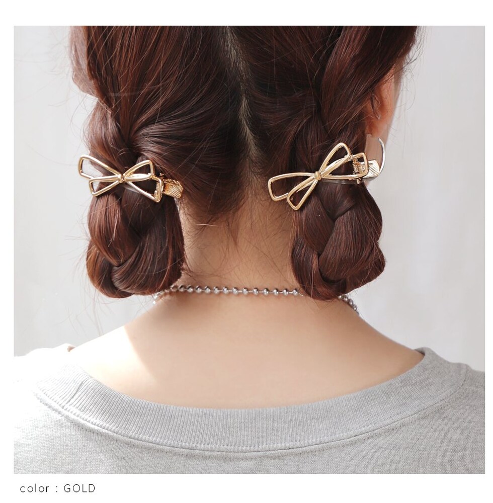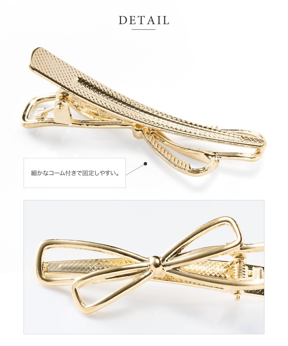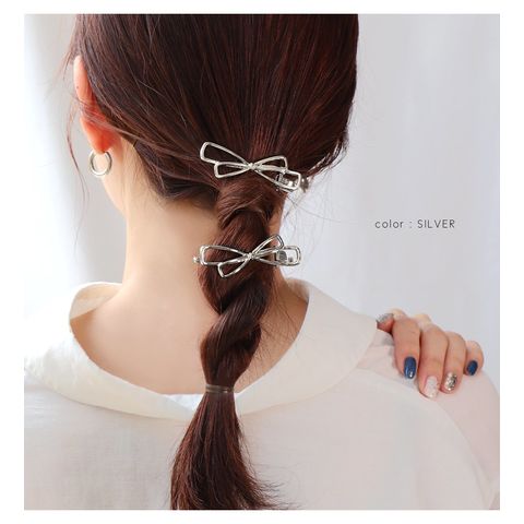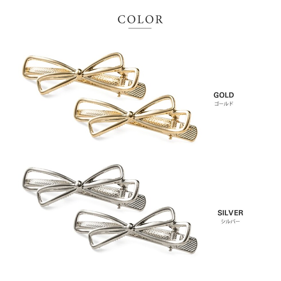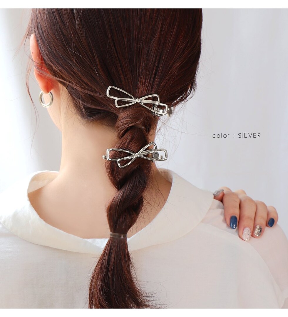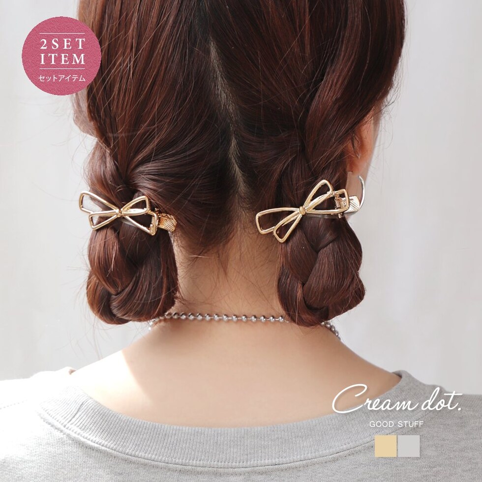 ヘアアクセサリー レディース 2点セット ヘアクリップ 髪留め まとめ髪 リボン リボンモチーフ メタル メタルリボン 挟むだけ 簡単 cream dot ゆうパケット [シルバー_2セット]