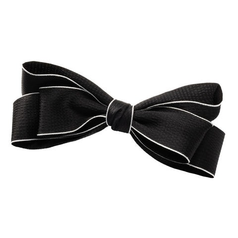 大人っぽいモノトーンカラーのリボンバレッタ。高級感あるシアサッカー生地と、バイカラーで縁どったデザインが華やかで涼しげなアクセントを添えてくれます。シンプルだからデイリーに取り入れやすいアイテムです。