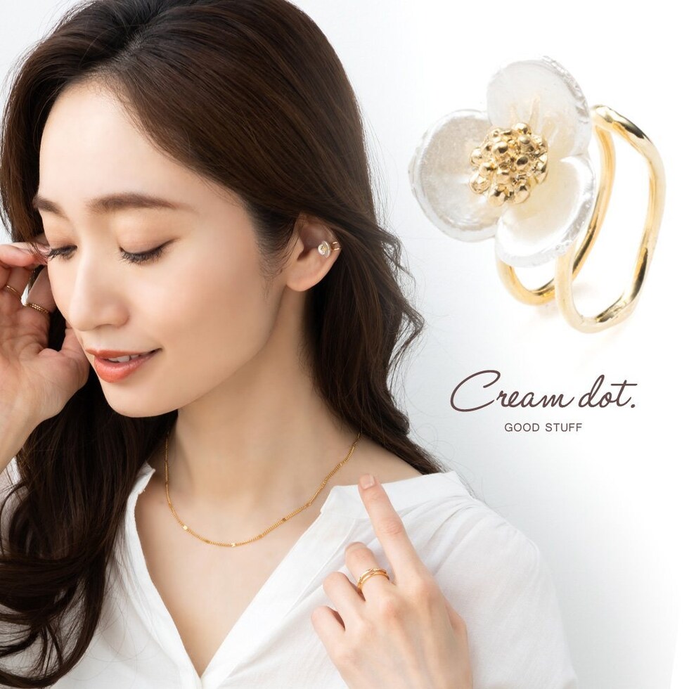 イヤーカフ レディース イヤーカフ イヤカフ 片耳用 フラワー 花びら シェルカラー 小さめ 小ぶり ミニ cream dot ゆうパケット [ホワイトゴールド_フリーサイズ]