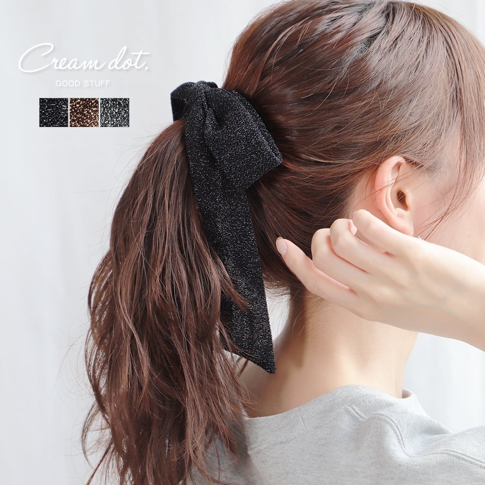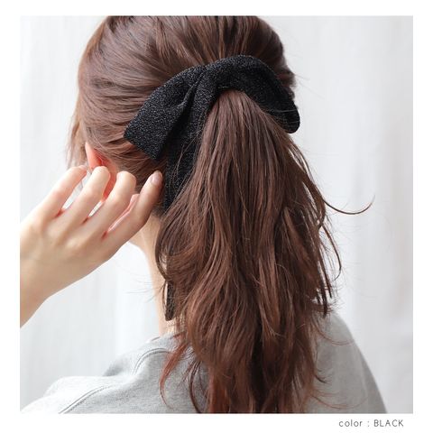ヘアアクセサリー レディース ポニーフック ヘアフック ヘアカフス ヘアゴム リボン グリッター ラメ ロング 長め 立体 ボリューム 髪留め まとめ髪 グレー cream dot ゆうパケット [ブラック_ワンサイズ]