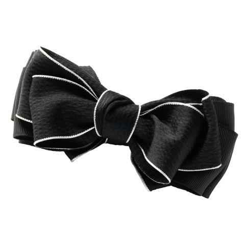 大人っぽいモノトーンカラーのリボンバナナクリップ。高級感あるシアサッカー生地と、バイカラーで縁どったデザインが華やかで涼しげなアクセントを添えてくれます。シンプルだからデイリーに取り入れやすいアイテムです。