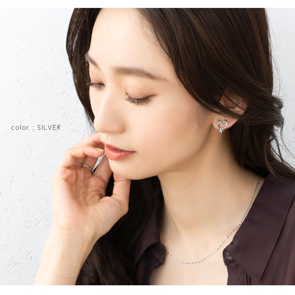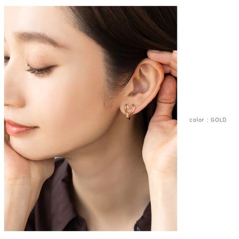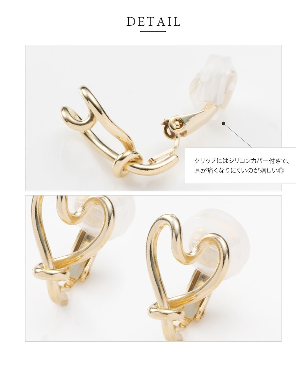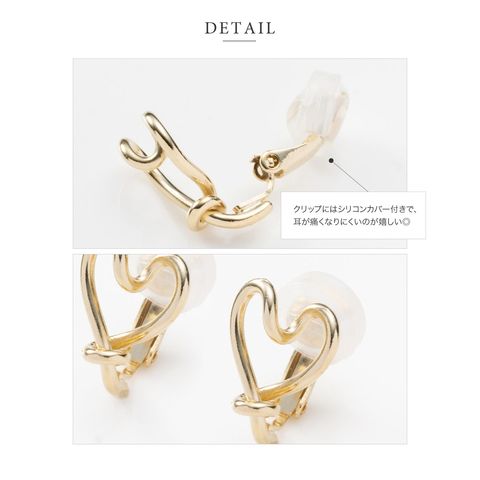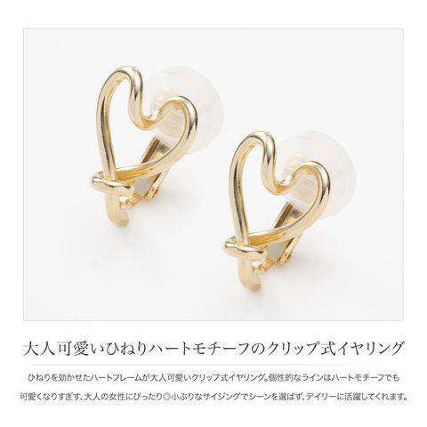 ひねりを効かせたハートフレームが大人可愛いクリップ式イヤリング。個性的なラインはハートモチーフでも可愛くなりすぎす、大人の女性にぴったり◎小ぶりなサイジングでシーンを選ばず、デイリーに活躍してくれます。