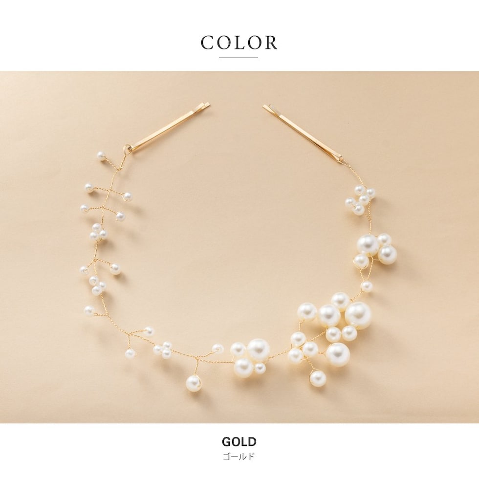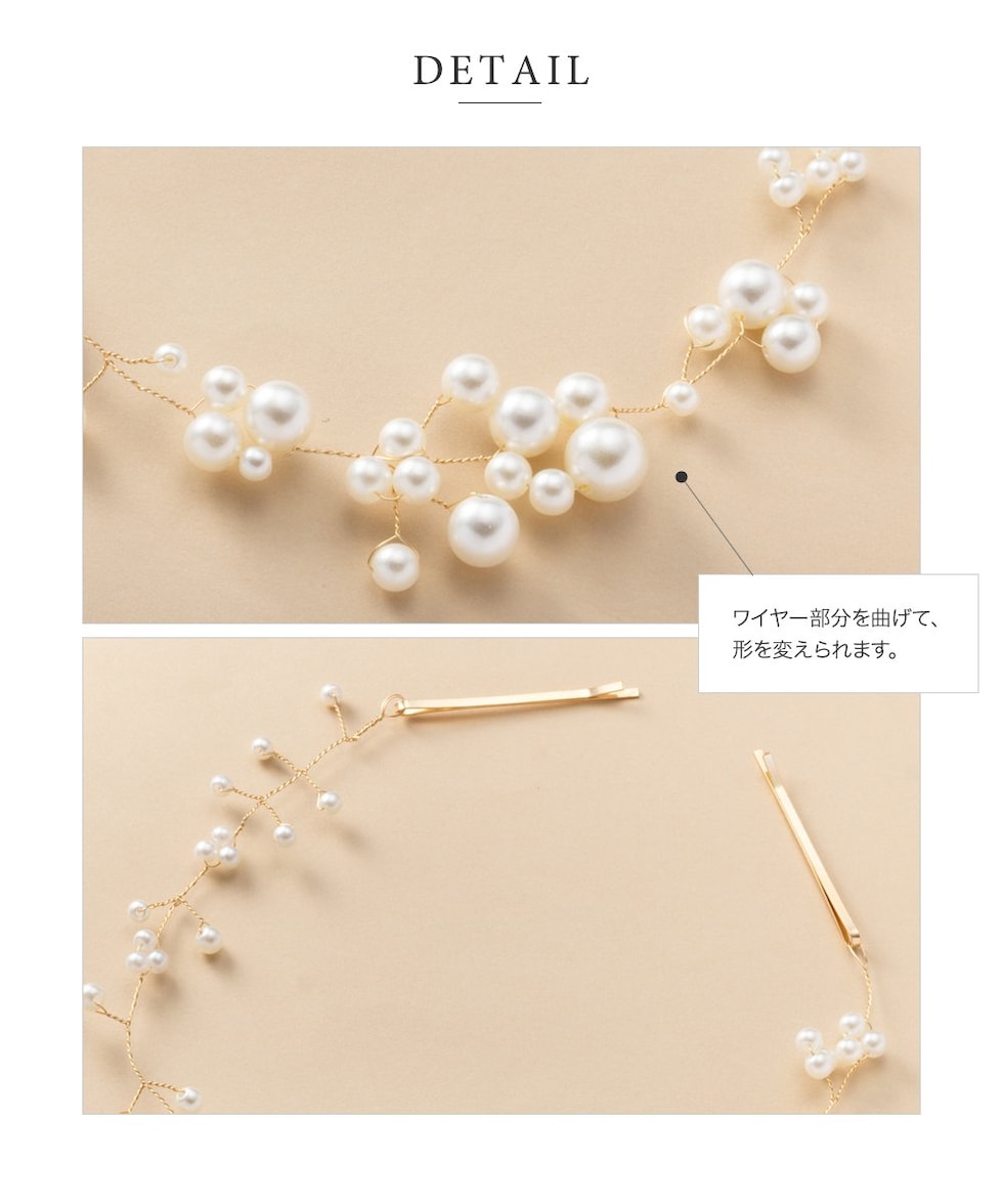 両サイドをヘアピンで留めるだけで簡単に着用が出来るのも嬉しいpoint◎大きさの異なるパールを散りばめたデザインが、華やかで大人可愛い印象に仕上げてくれます。