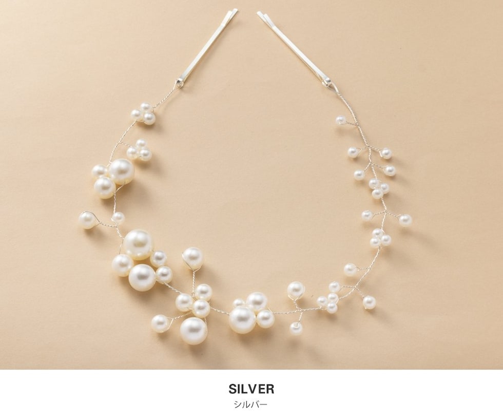 ハンドメイドのデコラティブなランダムパールヘッドドレス。簡単アレンジでも手の込んだ印象に見せてくれるお呼ばれシーンにぴったりなアイテム。繊細な装飾が華やかでフェミニンなスタイリングに仕上げてくれます。