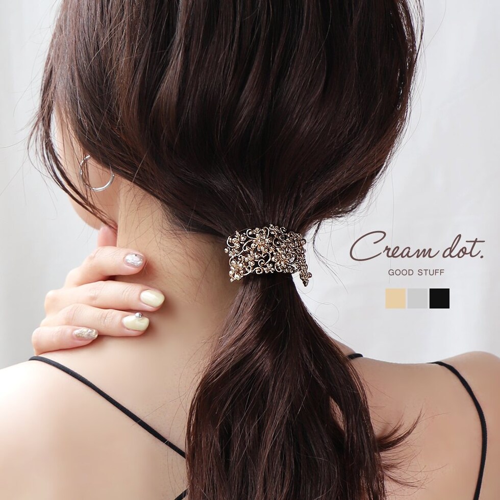 ヘアアクセサリー レディース ポニーフック ヘアフック ヘアカフス ヘアゴム 髪留め まとめ髪 アンティーク調 透かし模様 フラワー ブラックプレーティング ブラック cream dot ゆうパケット [ブラック_ワンサイズ]