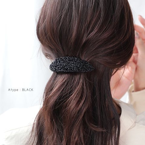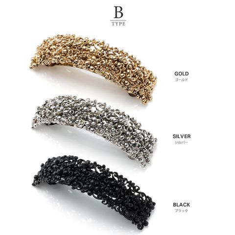 ヘアアクセサリー レディース バレッタ ヘアクリップ 髪留め まとめ髪 アンティーク調 透かし模様 メタル ブラックプレーティング 2タイプ ブラック cream dot ゆうパケット [B:シルバー_ワンサイズ]