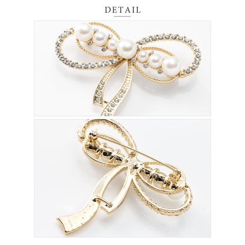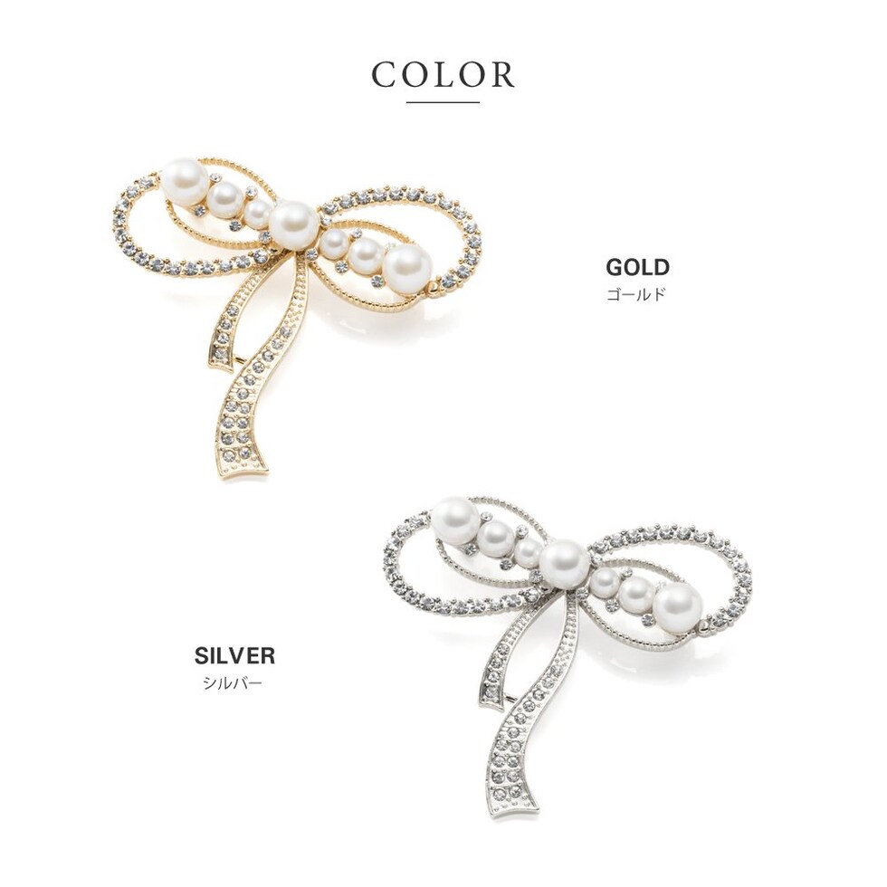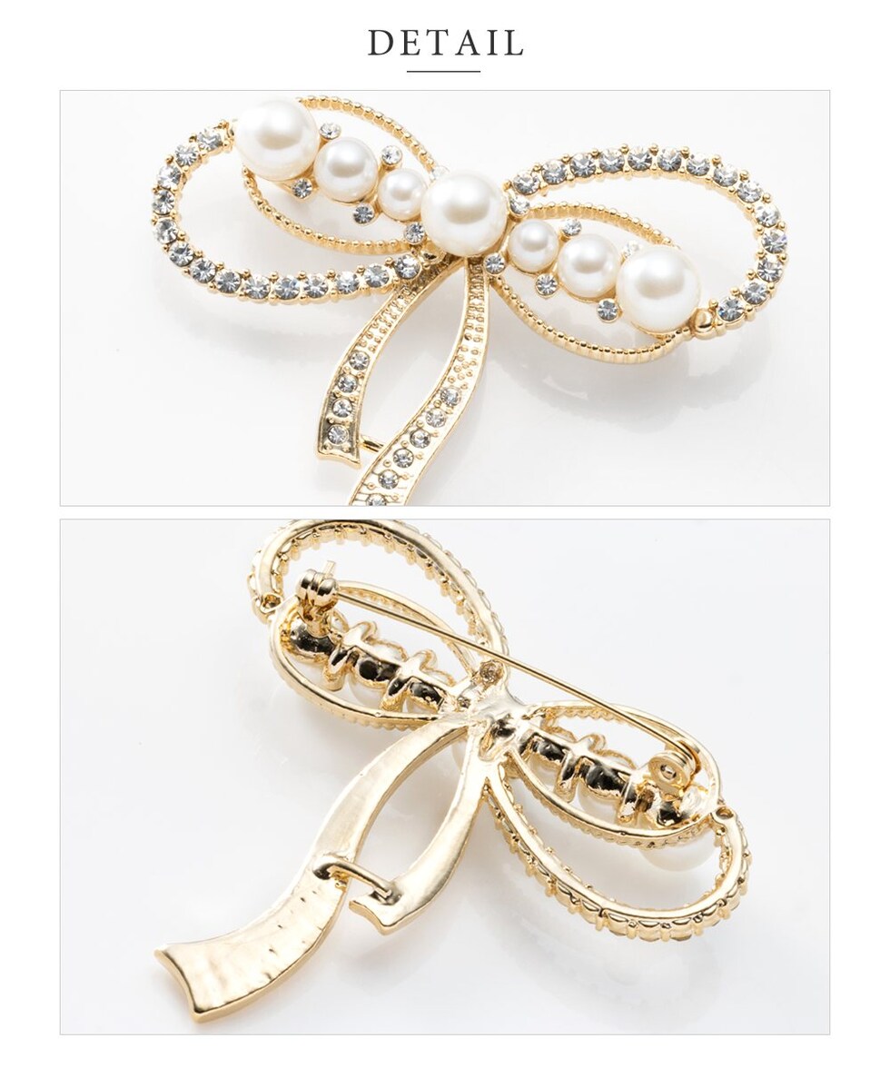 ブローチ フォーマル 卒業式 卒園式 入学式 入園式 ママスーツ コサージュ リボン ビジュー パール パヴェ ピン cream dot ゆうパケット [ゴールド_ワンサイズ]