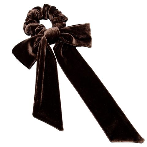 光沢感ある大きめベロアリボンのシュシュ。存在感たっぷりなロング丈のリボンがアレンジをグッとオシャレな雰囲気に仕上げます。大人に似合うシックなカラーとサッと装着できるシュシュで普段使いしやすいアイテムです。