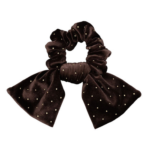 ヘアアクセサリー レディース シュシュ リボン ベロア ベルベット スクエア ボリューム 大きめ ヘアゴム まとめ髪 ドットスタッズ 2タイプ ワイン cream dot ゆうパケット [B:ブラウン_ワンサイズ]
