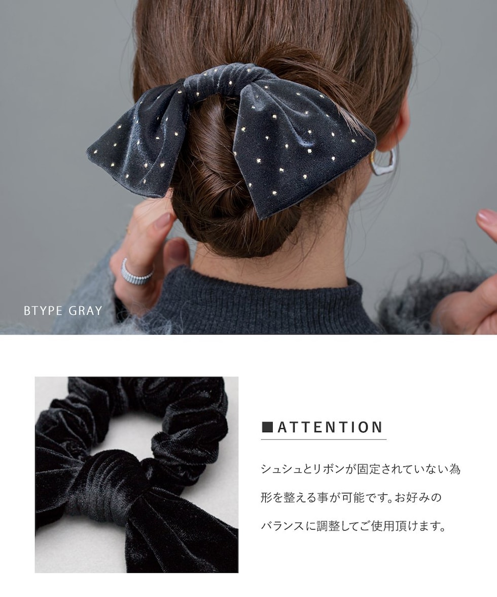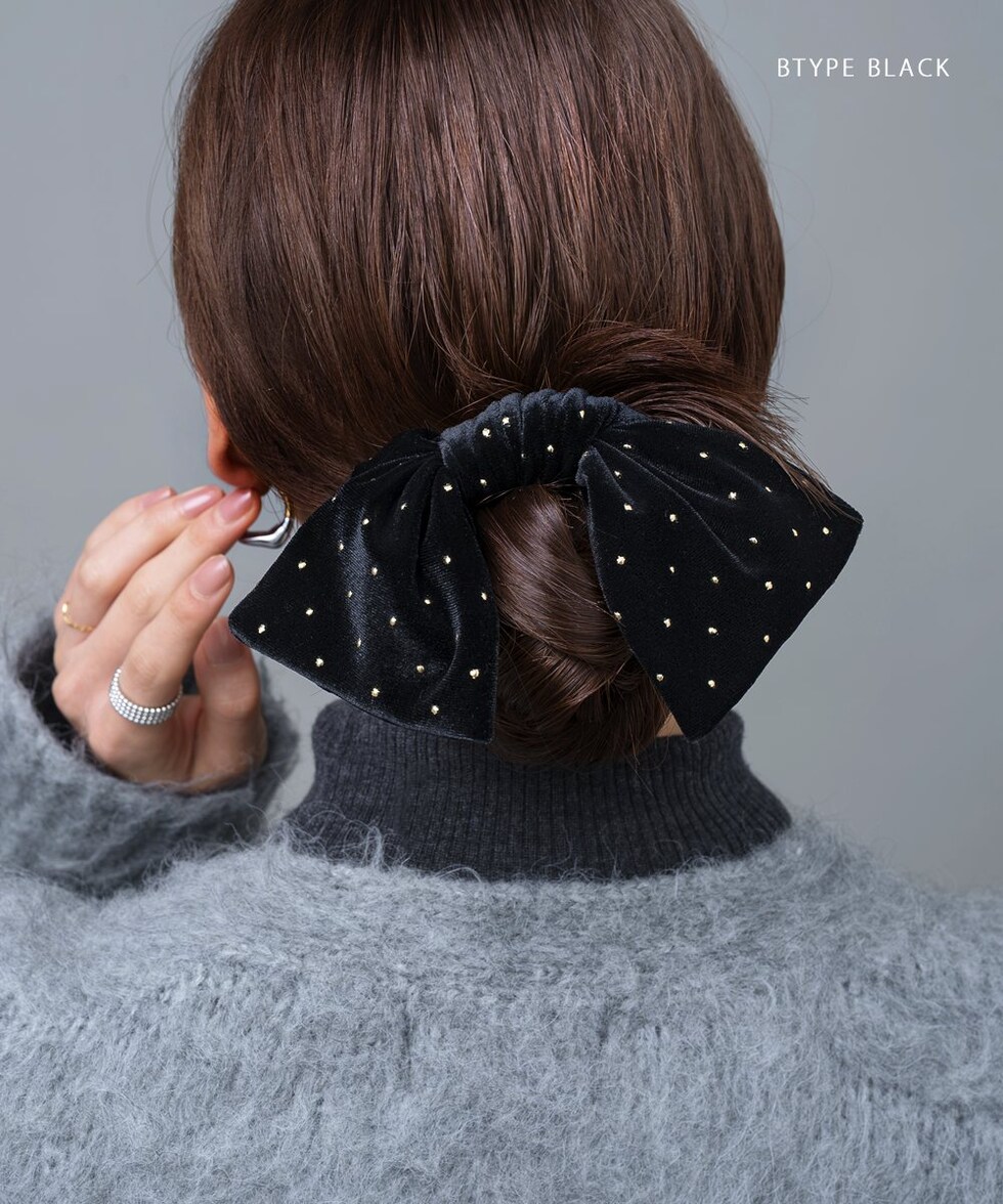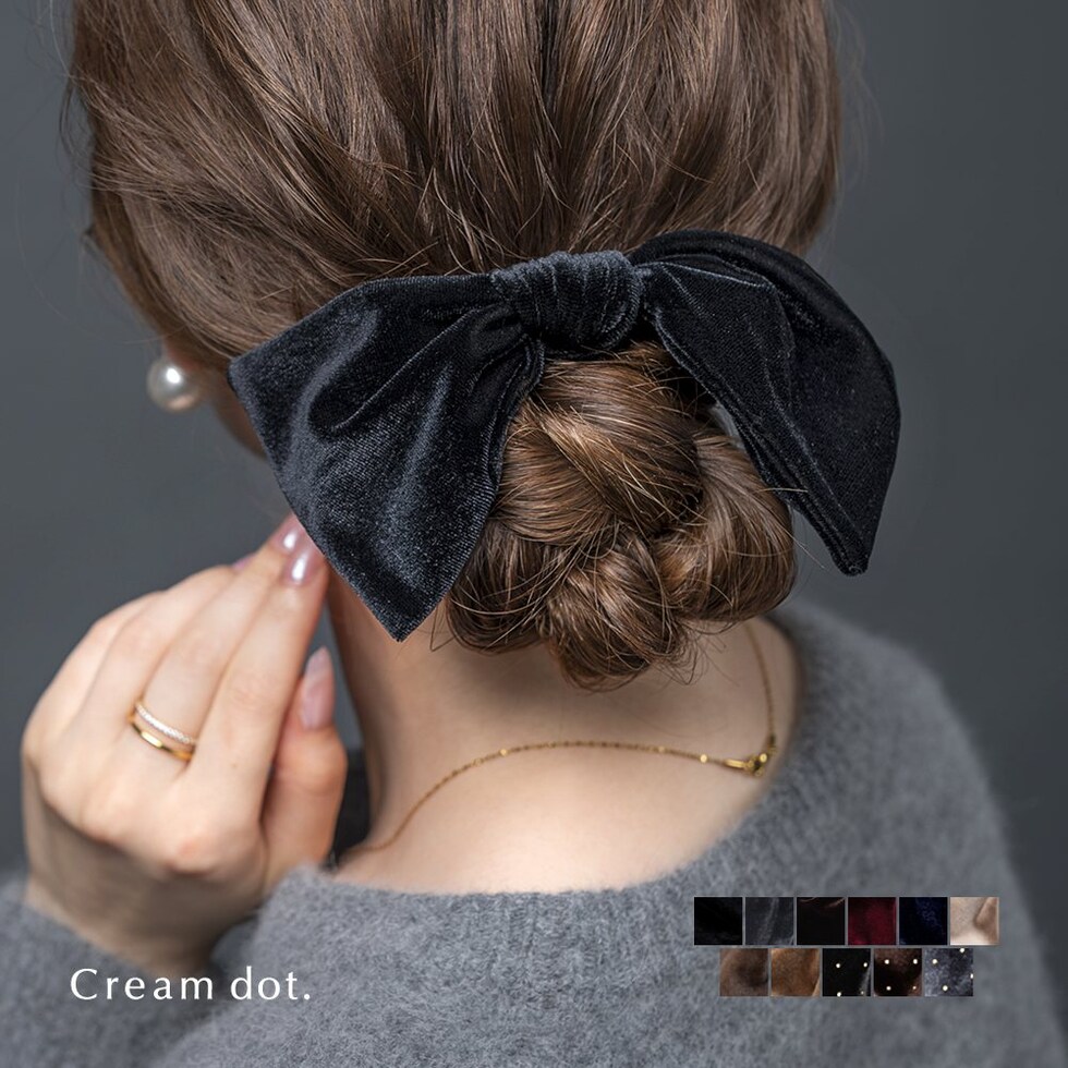 ヘアアクセサリー レディース シュシュ リボン ベロア ベルベット スクエア ボリューム 大きめ ヘアゴム まとめ髪 ドットスタッズ 2タイプ ワイン cream dot ゆうパケット [A:ベージュ_ワンサイズ]