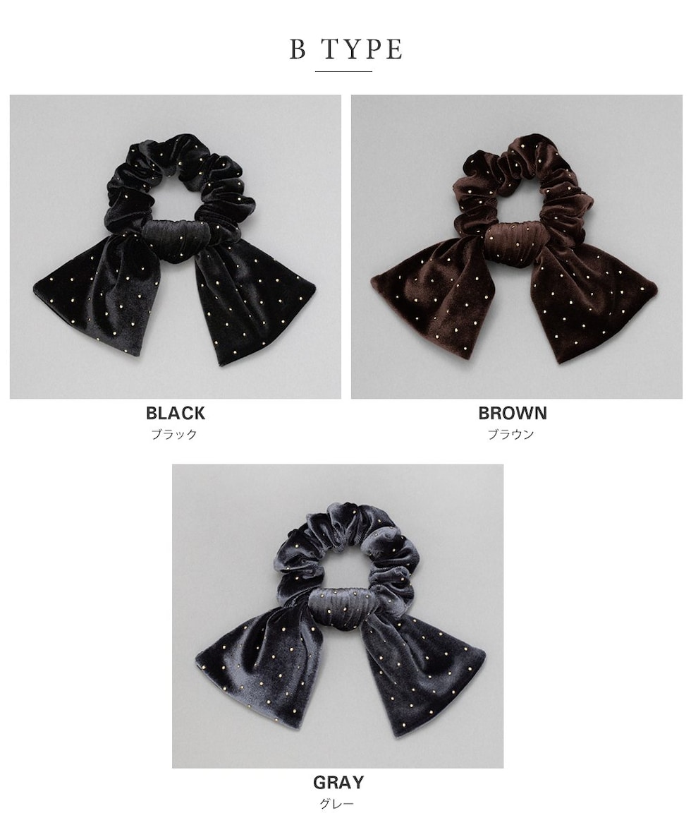 定番のブラックからワインやネイビーなど大人に似合うシックなカラーを取り揃え◎無地、ドットスタッズから選べる2typeです。高級感のあるベロア生地でギフトにもオススメ♪