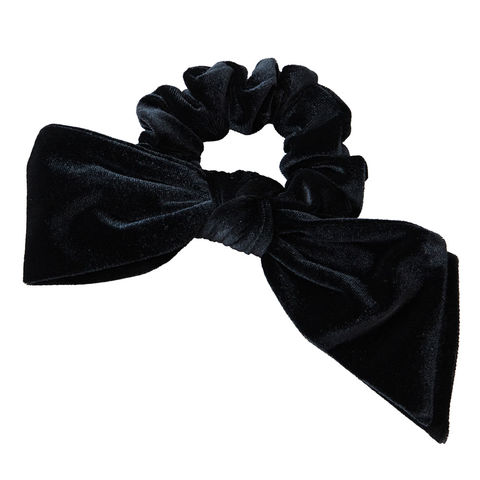 光沢感ある大きめベロアリボンのシュシュ。ラフな雰囲気のアシンメトリーなリボンがアレンジをグッとオシャレな雰囲気に仕上げます。大人に似合うシックなカラーとサッと装着できるシュシュで普段使いしやすいアイテムです。