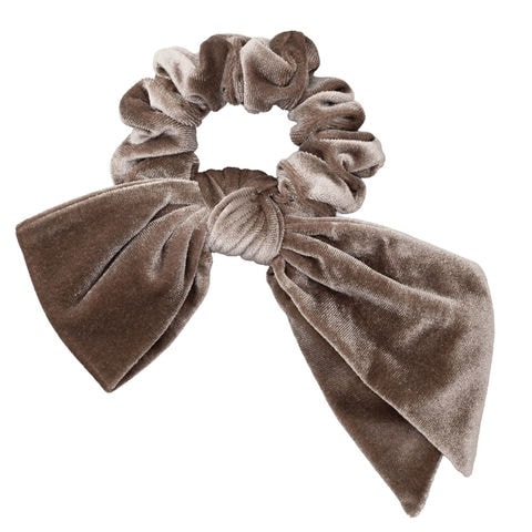 ヘアアクセサリー レディース シュシュ リボン ベロア ベルベット アシンメトリー ボリューム 大きめ ヘアゴム 髪留め まとめ髪 光沢感 キャメル cream dot ゆうパケット [モカ_ワンサイズ]