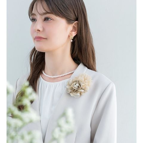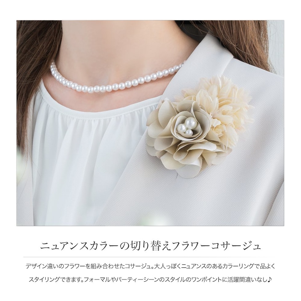 コサージュ パール フォーマル 卒業式 卒園式 入学式 入園式 ママスーツ フラワー ダブル 切り替え ピン クリップ ワンポイント cream dot ゆうパック [ベージュ_ワンサイズ]