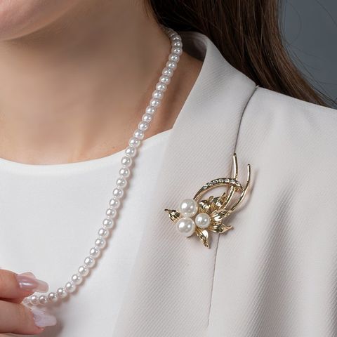 ブローチ フォーマル 卒業式 卒園式 入学式 入園式 ママスーツ パール ビジュー メタル リーフ 葉 コサージュ ピン cream dot ゆうパケット [ゴールド_ワンサイズ]