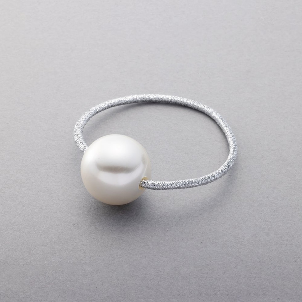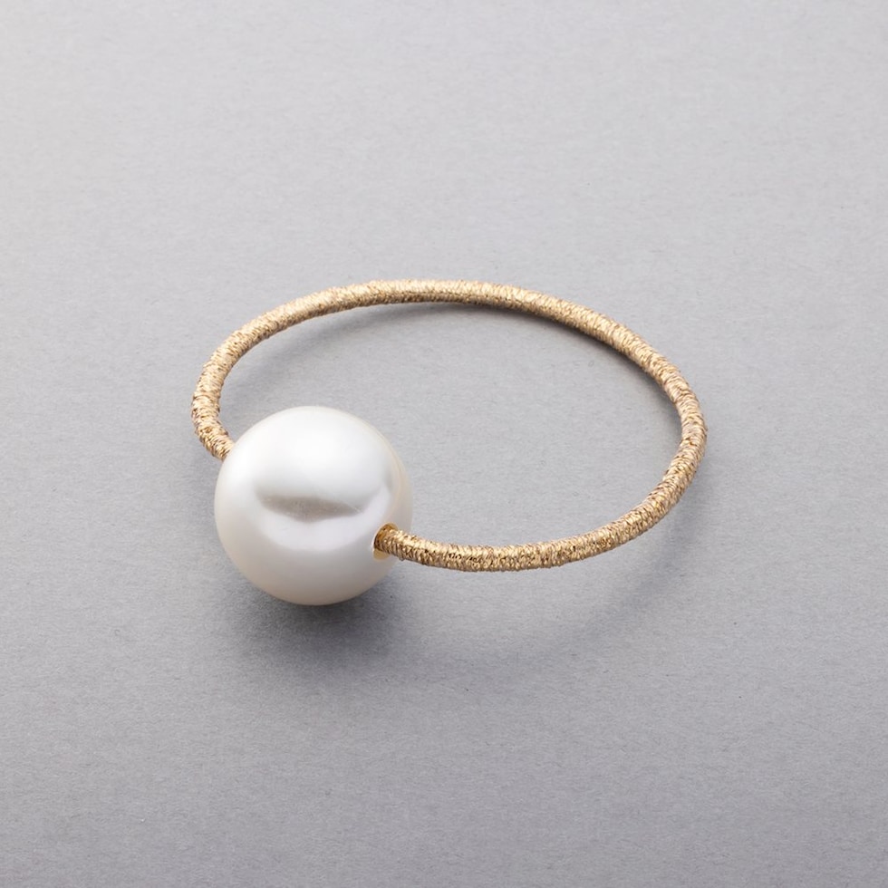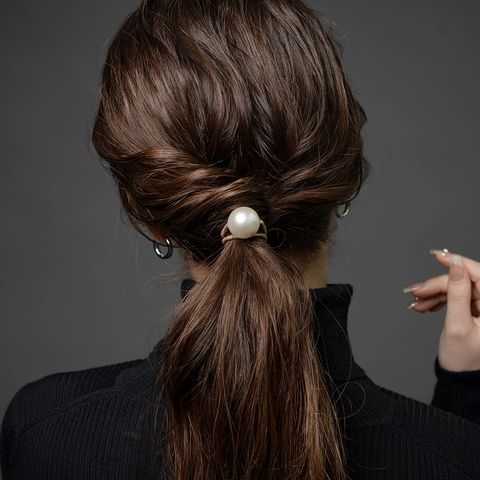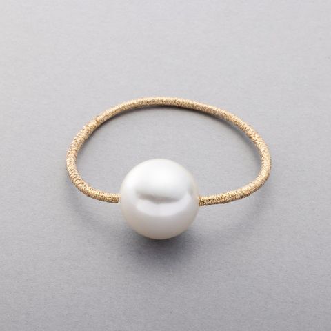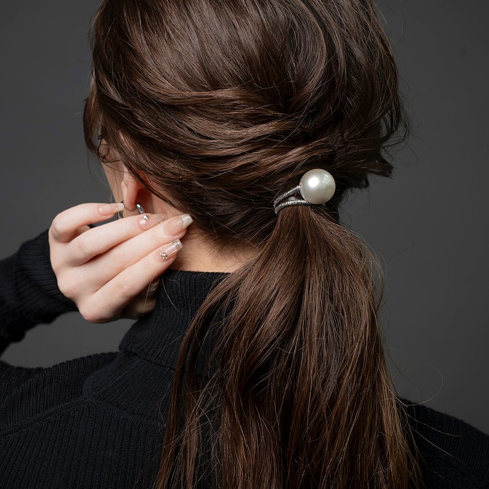 パッと目を引く大粒パールのヘアゴム。ノーブルな存在感とさりげないラメ感のゴムで、上品なデザインだけど気取らずデイリーに取り入れられるのが魅力。さっと結ぶだけでいつものまとめ髪に華やぎをプラスし、360度どこから見ても映える後ろ姿に◎