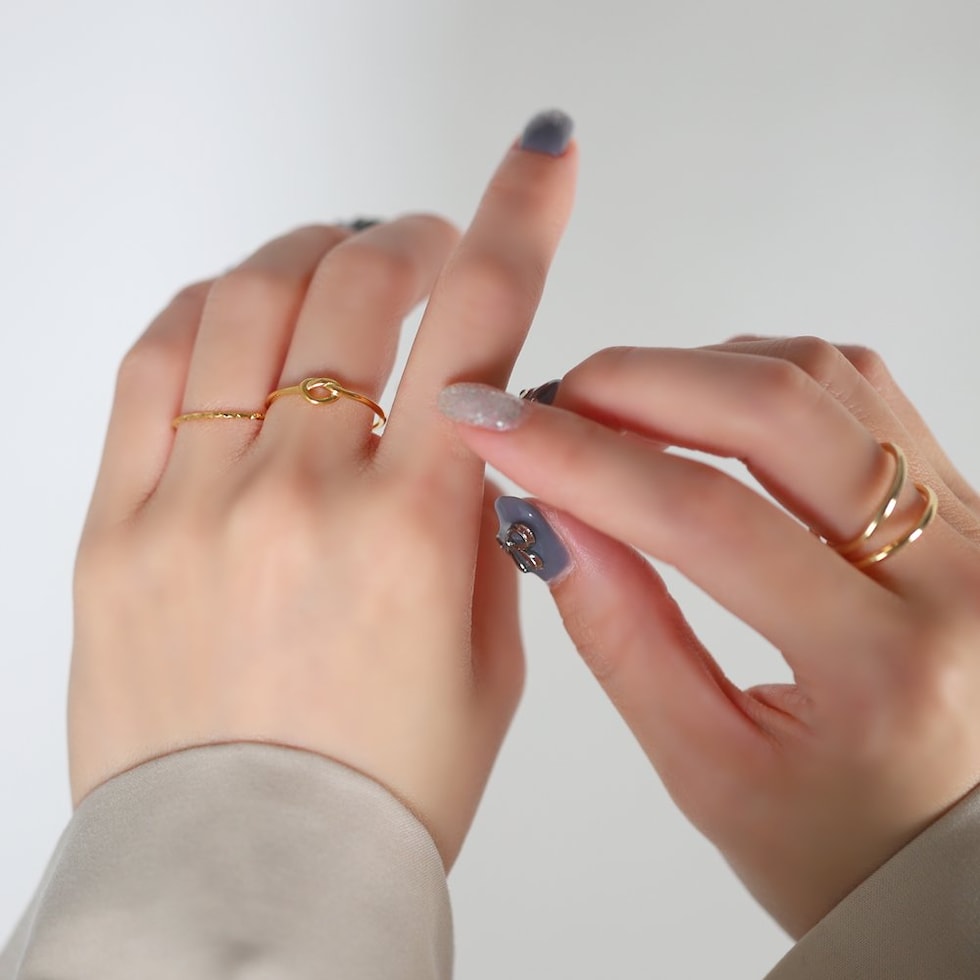 シンプルなラインと結び目モチーフで、さりげなく個性が光る華奢デザインリング。丸みのある緩やかなラインは大人フェミニンなコーデにも好相性◎錆びにくく傷に強いステンレス製で、デイリーに活躍してくれます。長時間の着用も安心の低アレルギー素材です。