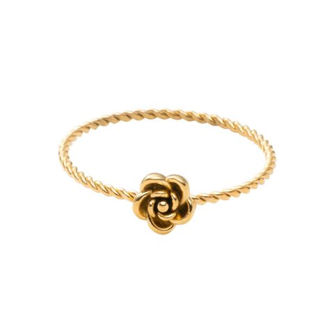 リング 指輪 ステンレス 金属アレルギー サージカルステンレス レディース つけっぱなし フラワー 立体感 ツイスト メタル 凹凸 cream dot ゆうパケット [ゴールド_15号]