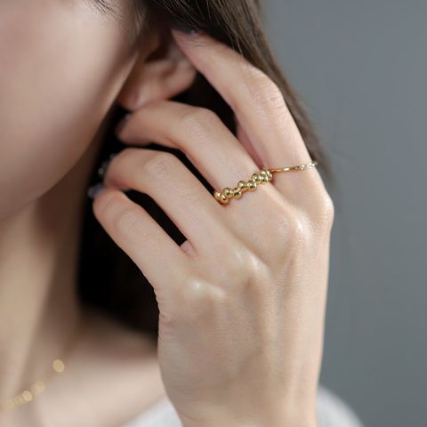 粒々バブルのステンレス製リング。粒々としたメタルボールでも内側は平らな甲丸仕様で着け心地抜群◎メタルのしっとりとした艶感で控えめに華やぐから、アクセントが欲しいけどシンプルが好きなあなたにぴったり。