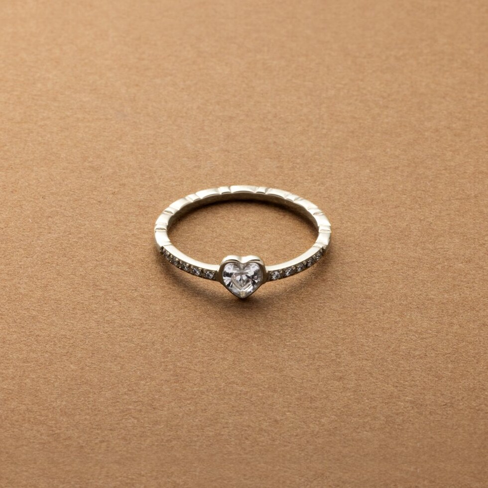 愛らしハートが煌めくのステンレス製ビジューラインリング。程よいボリューム感のハートビジューが愛らしいレディライクアイテム。繊細に煌めくラインストーンとハートモチーフのさりげなさが可愛くなり過ぎず大人っぽく“女らしさ”を楽しめそう◎