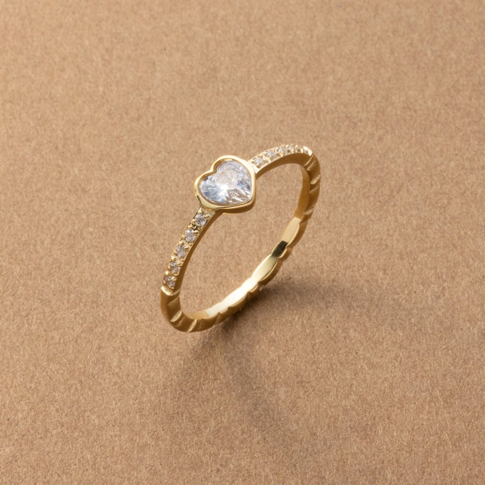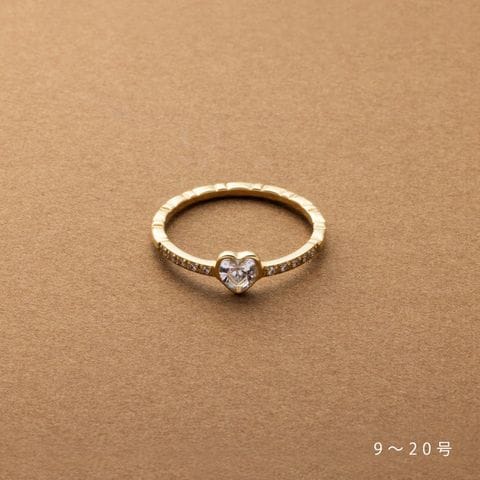 リング 指輪 ステンレス 金属アレルギー サージカルステンレス レディース つけっぱなし ハート ビジュー ライン cream dot ゆうパケット [ゴールド_17号]