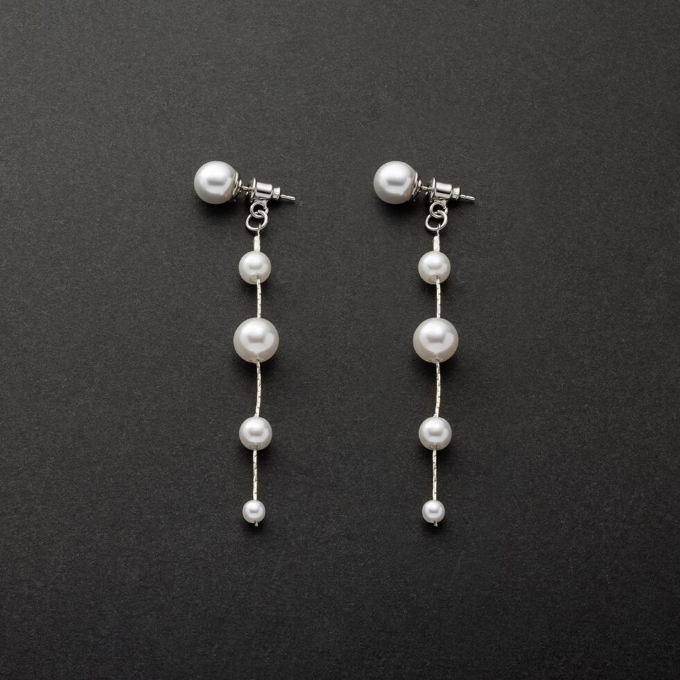 ピアス レディース ステーションパール チェーン バックキャッチ 揺れる 一粒 パール cream dot ゆうパケット [シルバー_ピアス]