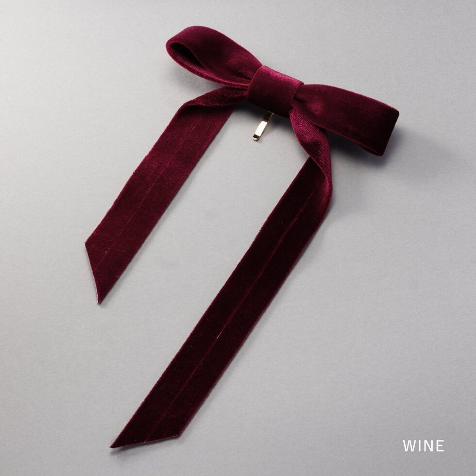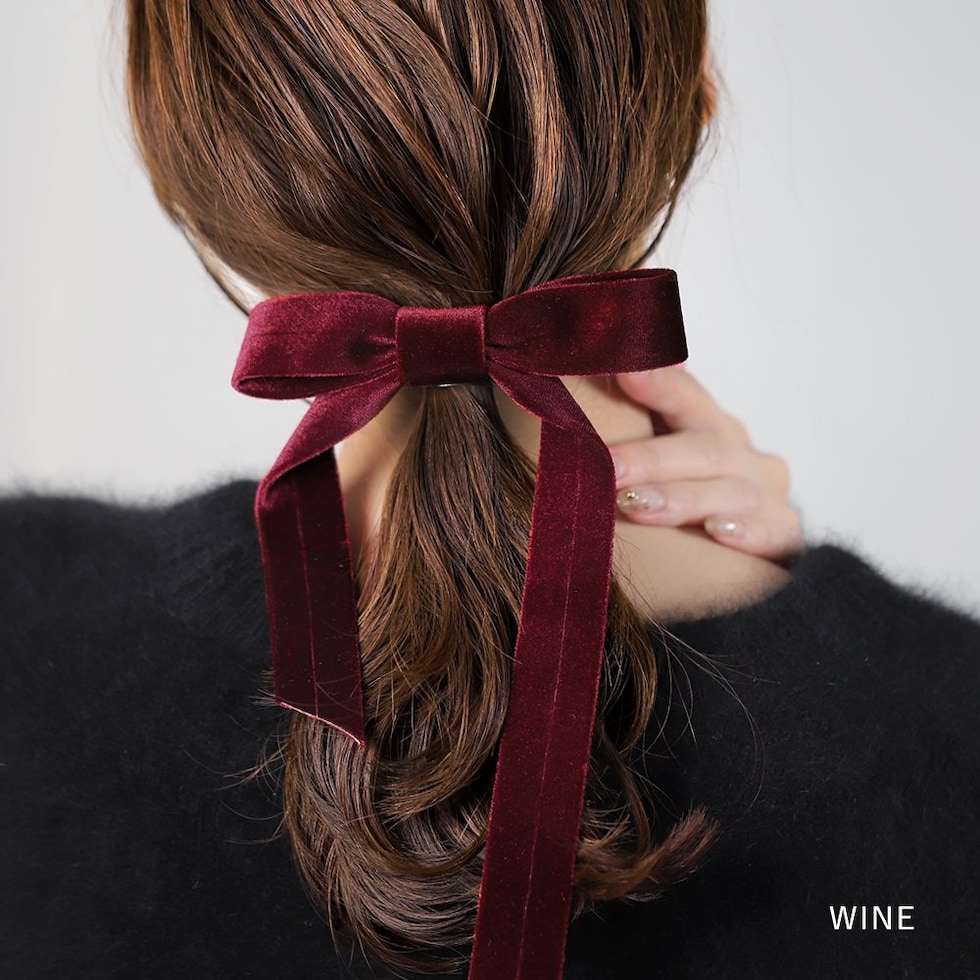 ヘアアクセサリー レディース ポニーフック ベロア リボン ベルベット アシンメトリー ロング 光沢感 ヘアゴム 簡単 髪留め まとめ髪 ワイン cream dot ゆうパケット [ワイン_ワンサイズ]