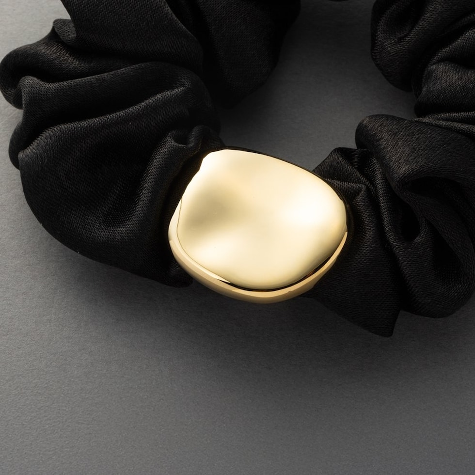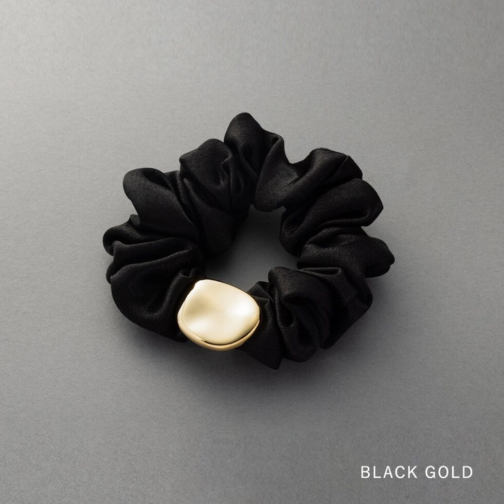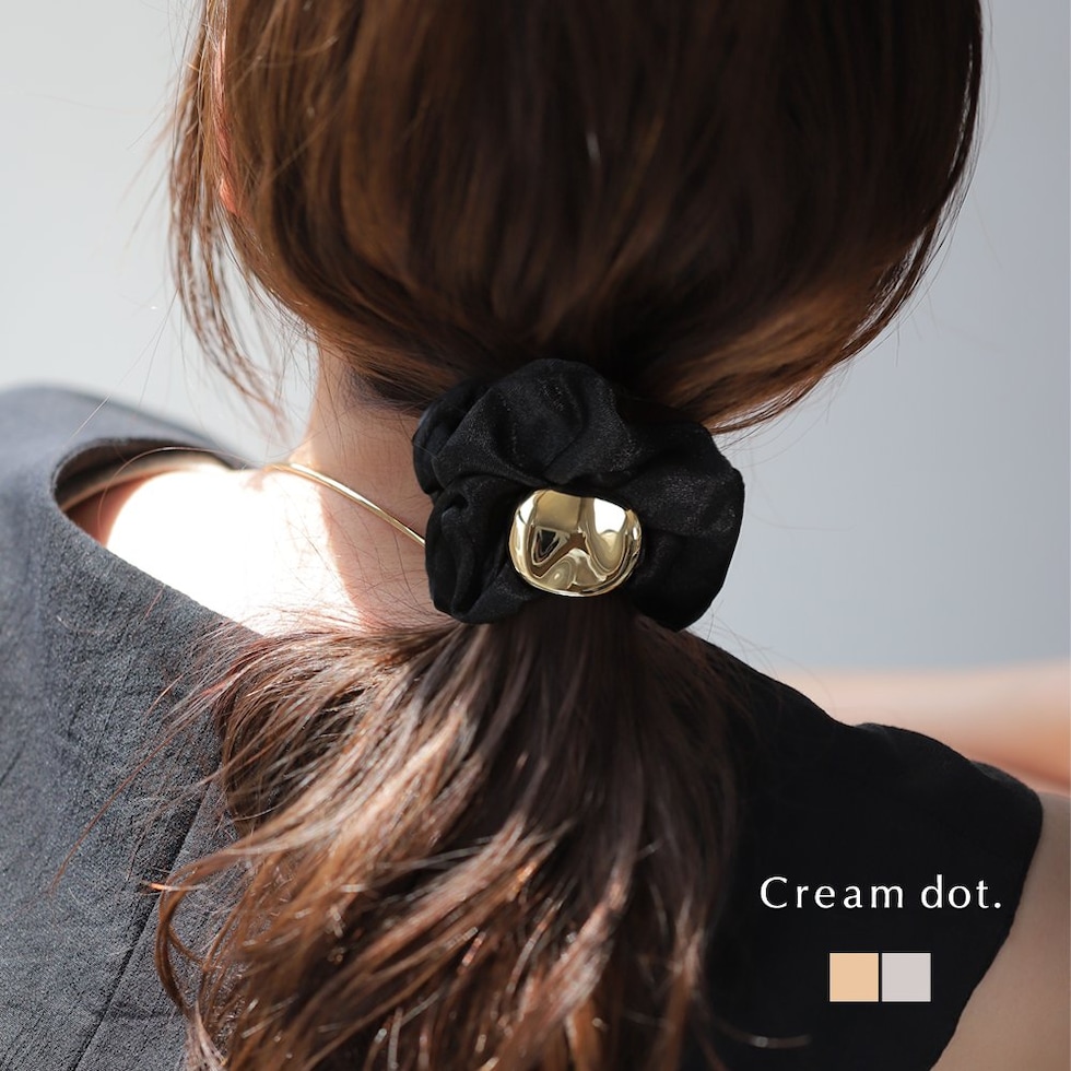 ヘアアクセサリー レディース シュシュ メタル サテン調 ヘアゴム ヘアアクセ ヘアアレンジ 簡単 まとめ髪 髪留め cream dot ゆうパケット [ブラック×ゴールド_ワンサイズ]