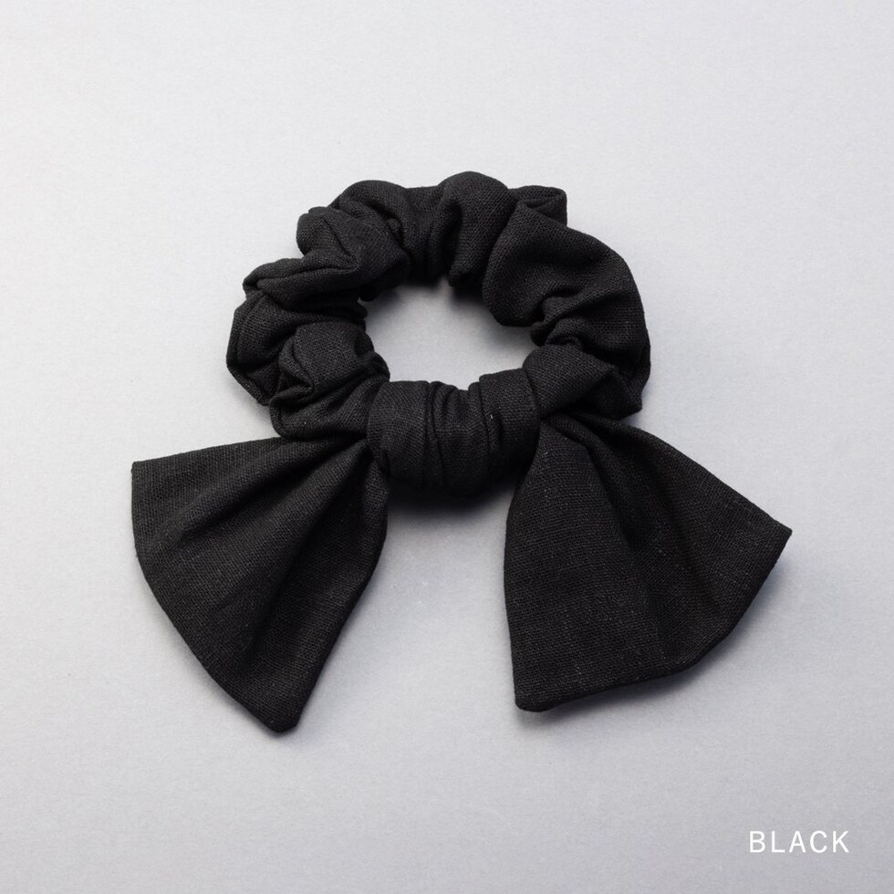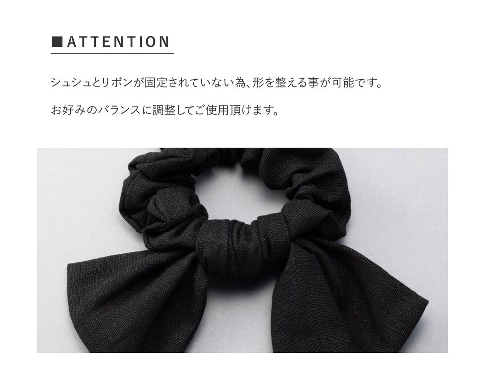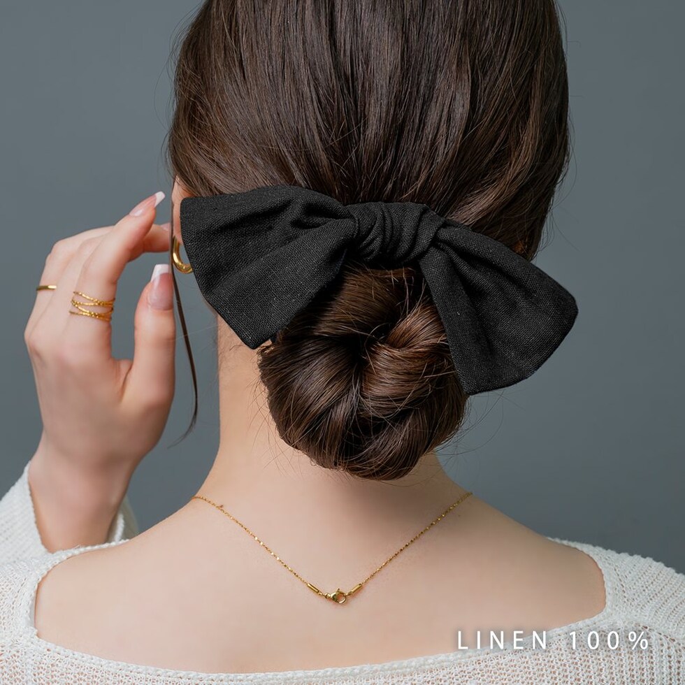 涼しげなリネン生地の大きめリボンシュシュ。ラフな雰囲気のスクエアリボンがアレンジをグッとお洒落に仕上げてくれます。サッと装着できるシュシュはデイリー使いにおすすめなアイテムです◎