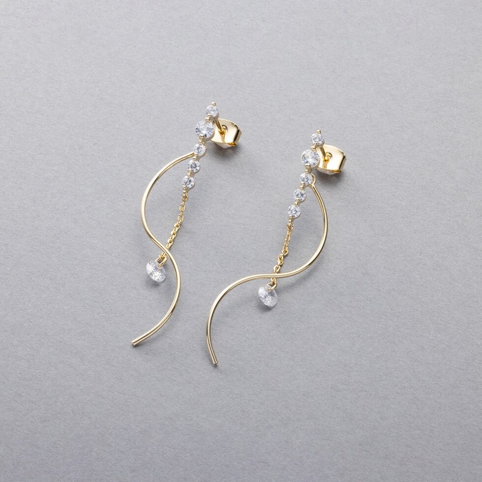 ピアス レディース ビジュー ライン ウェーブ メタル バー 揺れる スタッド cream dot ゆうパケット [シルバー_ピアス]