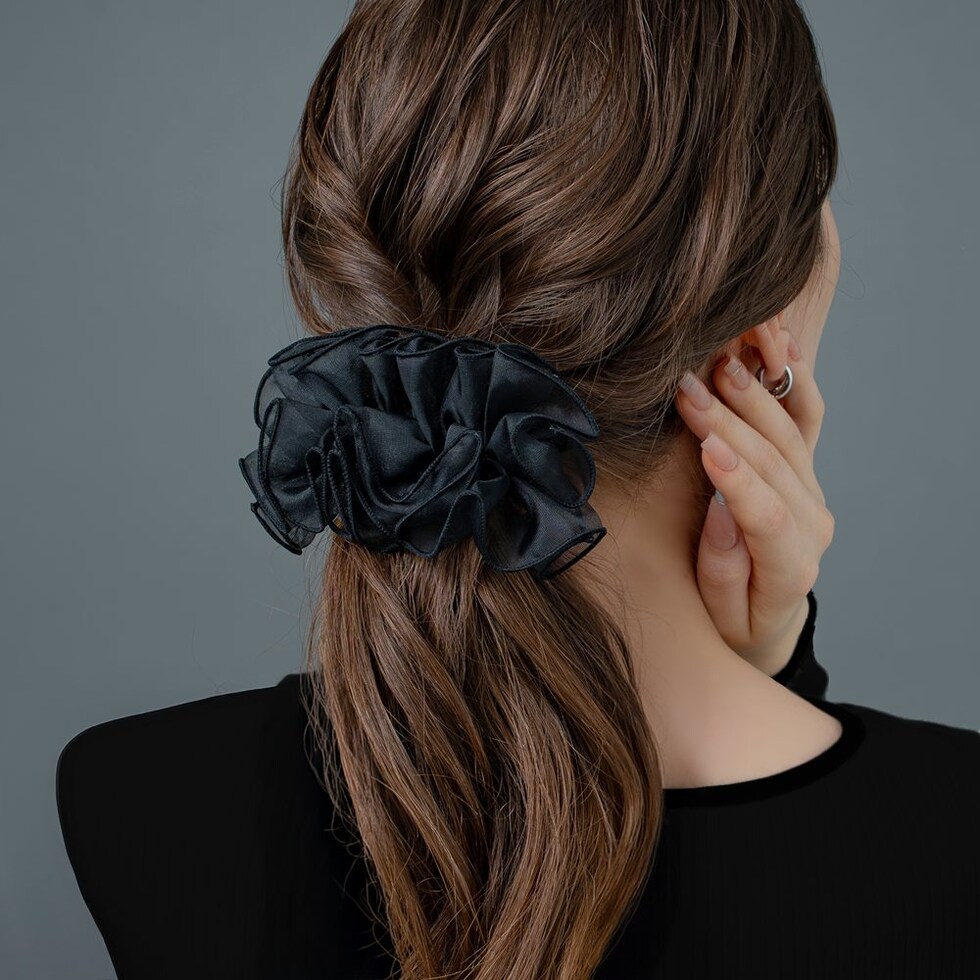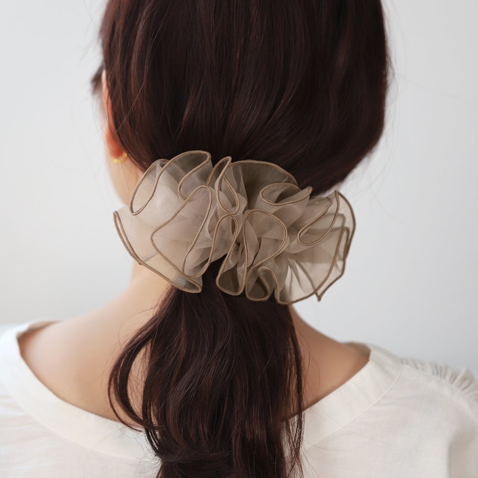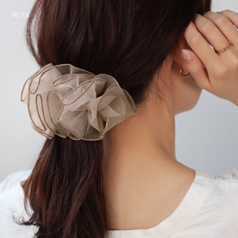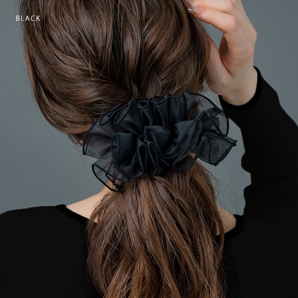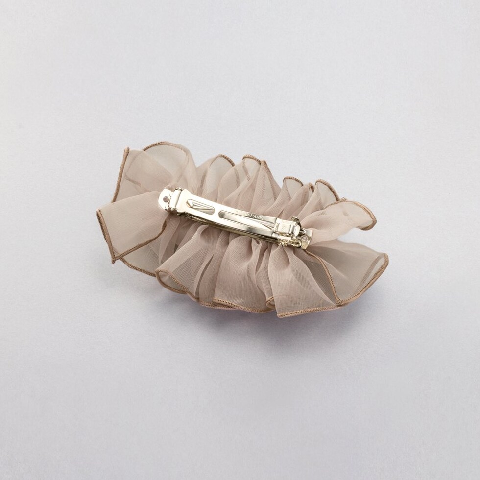 ボリューム感あるフリルデザインのバレッタ。 透け感のあるチュール生地を重ねてボリュームを持たせたシルエットが、女性らしく華やかな印象◎束ねただけのヘアスタイルを一気にブラッシュアップしてくれるアイテムです。