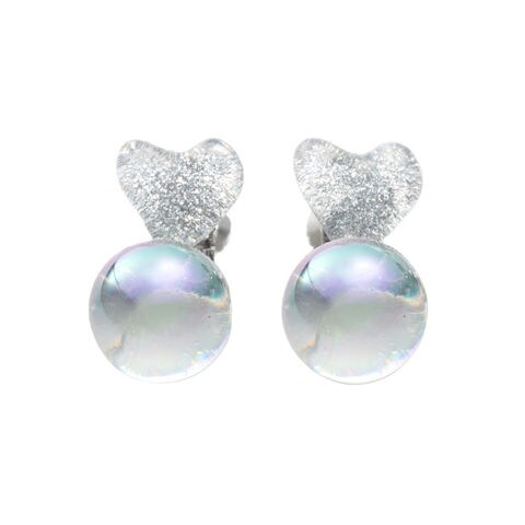 イヤリング ピアス レディース ネジ式 スタッド オーロラ キレイ色 スフィア ぷっくり ハート ホワイト cream dot ゆうパケット [シルバー_イヤリング]