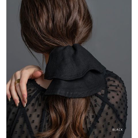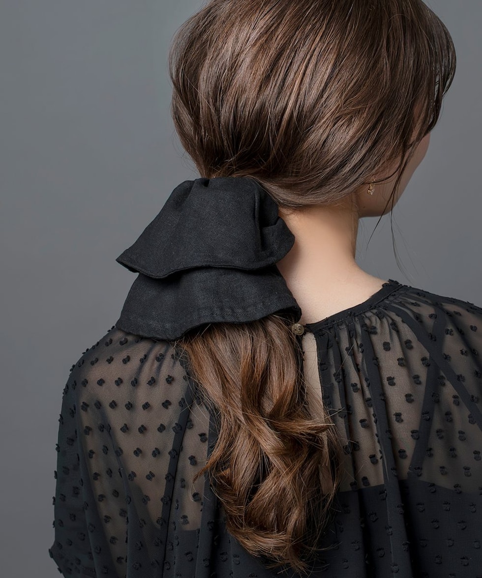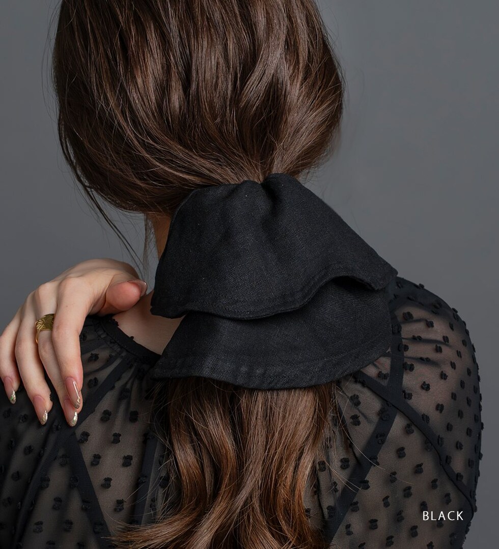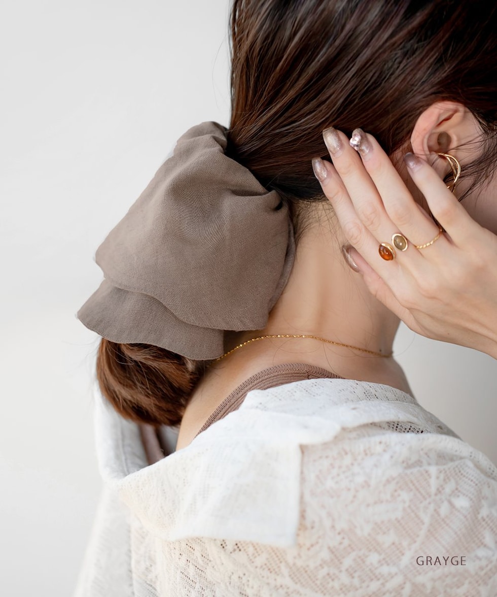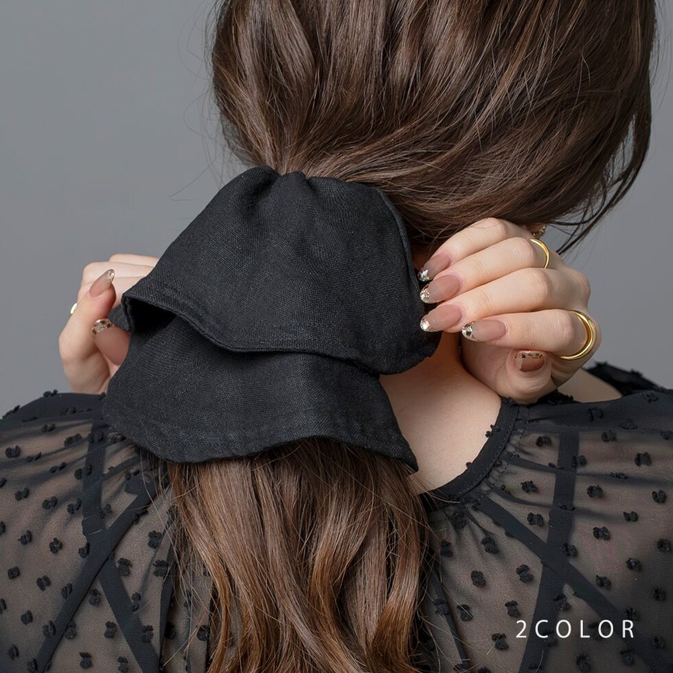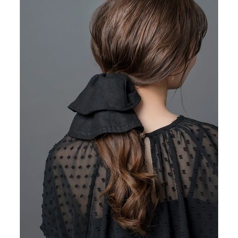 ヘアに沿って垂れるシルエットがこなれ感たっぷりなビッグシュシュ。リネンをMIXした涼しげ素材で春夏に特に活躍しそう◎サッと結ぶだけでおしゃれに仕上がるトレンドアイテムです。