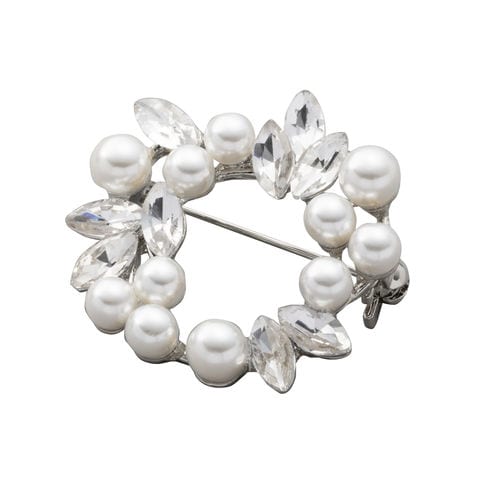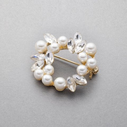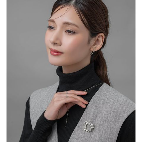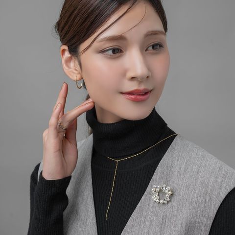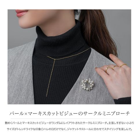 艶めくパールとマーキスカットビジューがランダムにレイアウトされたサークルミニブローチ。主張しすぎない小ぶりサイズがトレンドライクな印象◎ハレの日だけでなく、ジャケットやストールに合わせてスタイリングを楽しんで。