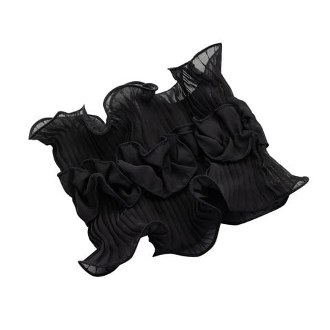 つけ襟 フリル シフォン ネックカバー レイヤード ネックウォーマー 首元カバー プリーツ 透け感 ハイネック ブラック cream dot ゆうパケット [ブラック_フリーサイズ]