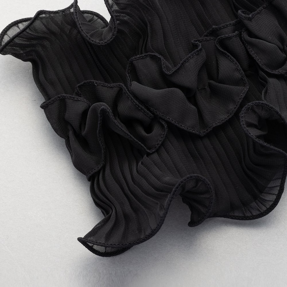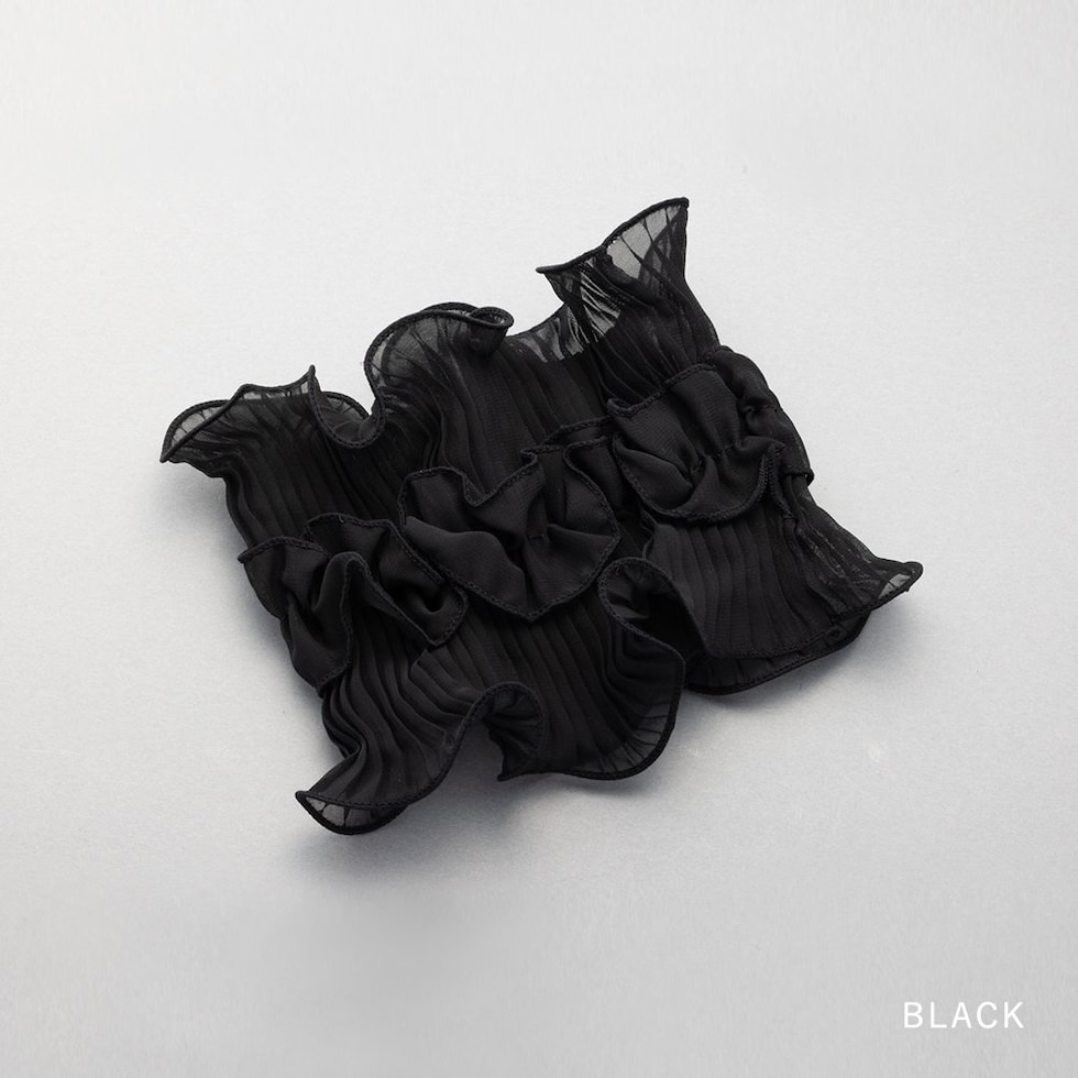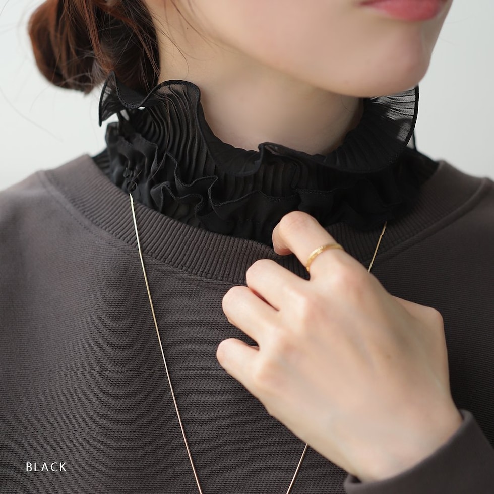 つけ襟 フリル シフォン ネックカバー レイヤード ネックウォーマー 首元カバー プリーツ 透け感 ハイネック ブラック cream dot ゆうパケット [ブラック_フリーサイズ]