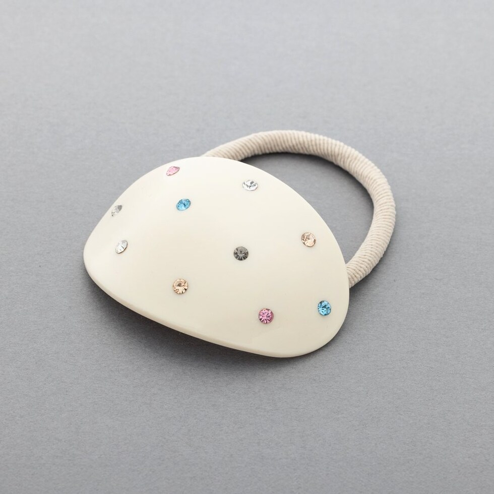 ヘアアクセサリー レディース ヘアゴム オーバル マルチビジュー ドット カラービジュー ヘアアクセ ヘアアレンジ ポニーテール 簡単 まとめ髪 髪留め cream dot ゆうパケット [ブラック_ワンサイズ]