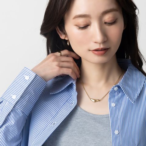 ハートを横長にして変形させたようなぷっくりモチーフのスネークチェーンネックレス。しなやかスネークチェーンに大人の遊び心をくすぐるデザインがこなれた雰囲気を演出します。品よく大人っぽく身につけられる、コーデのアクセントにぴったりなひと品◎