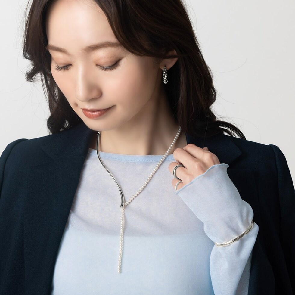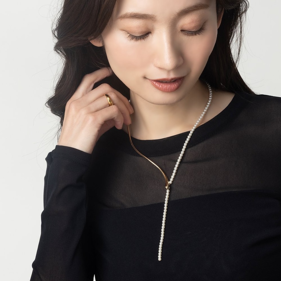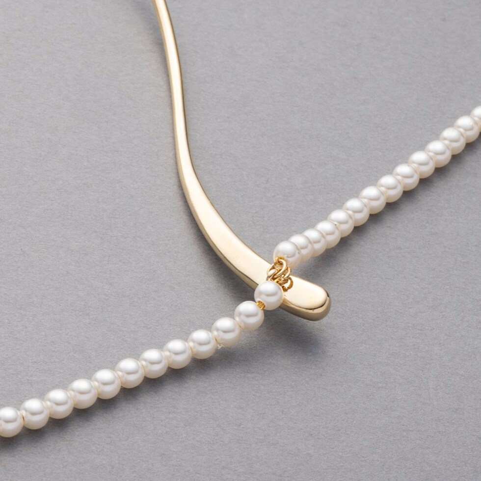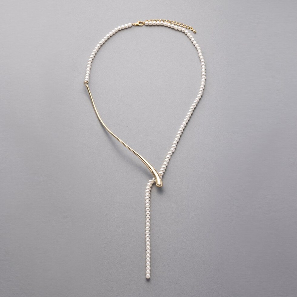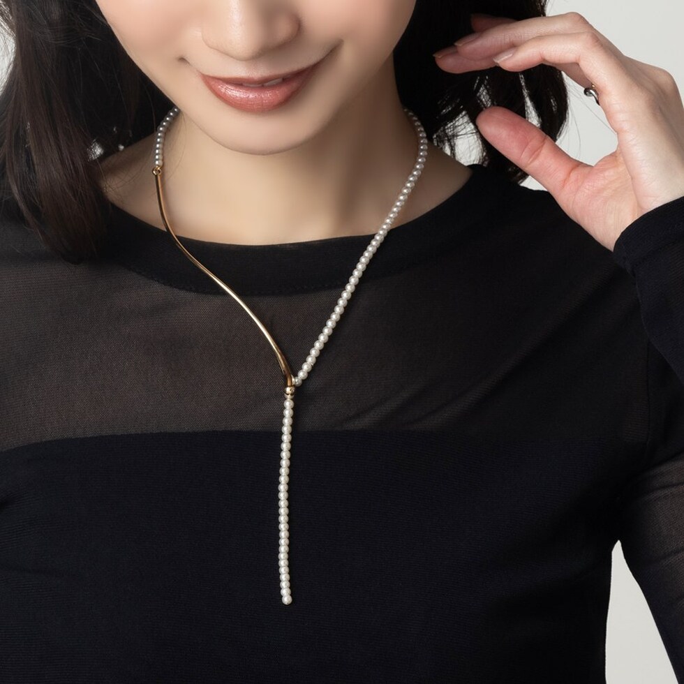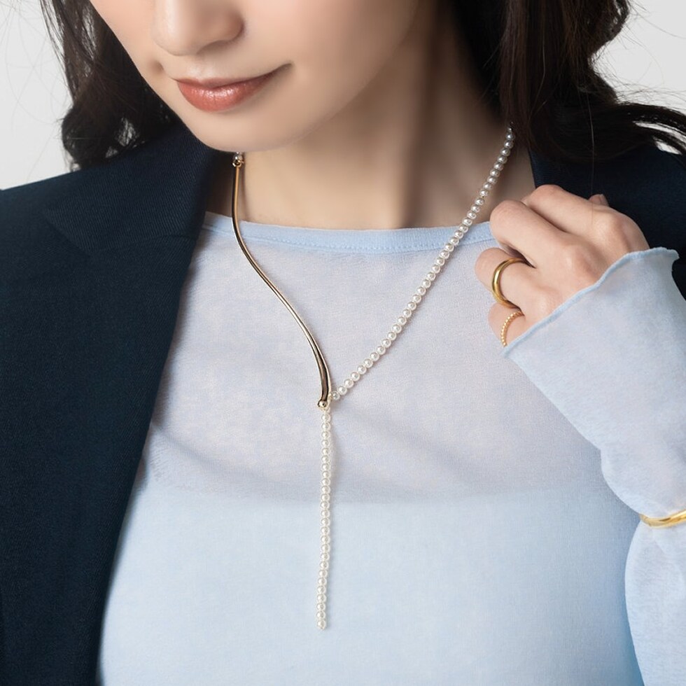 緩やかにカーブを描くメタルラインと艶めくパールを合わせたY字ネックレス。シンプルコーデもこれひとつでこなれ感ある華やかな仕上がりに◎カジュアルコーデはもちろん、オケージョンシーンにもおすすめのアイテムです。