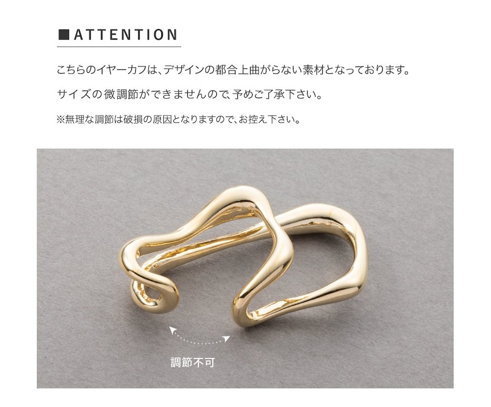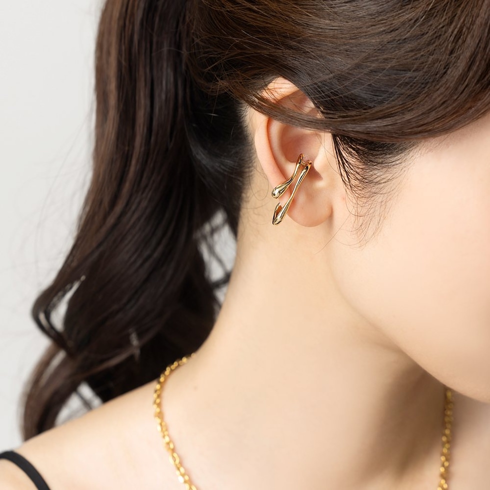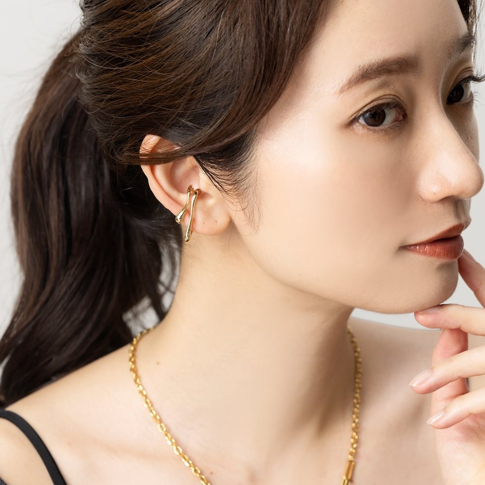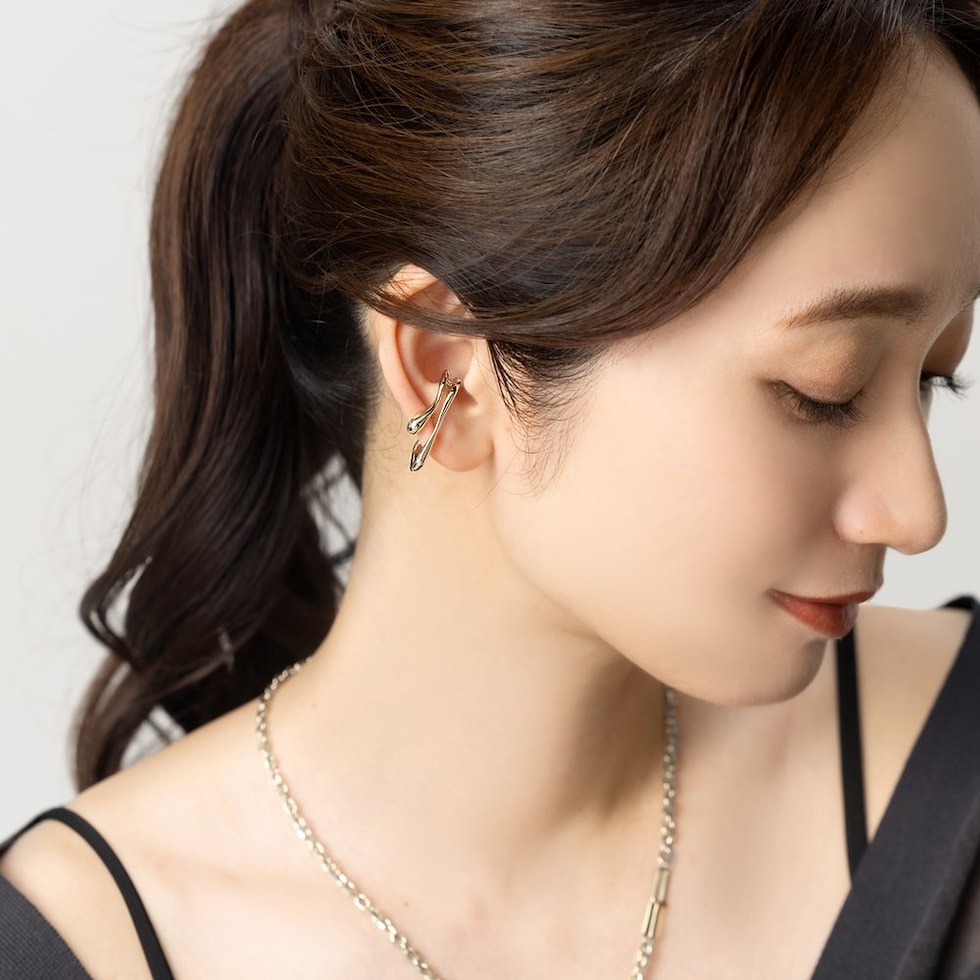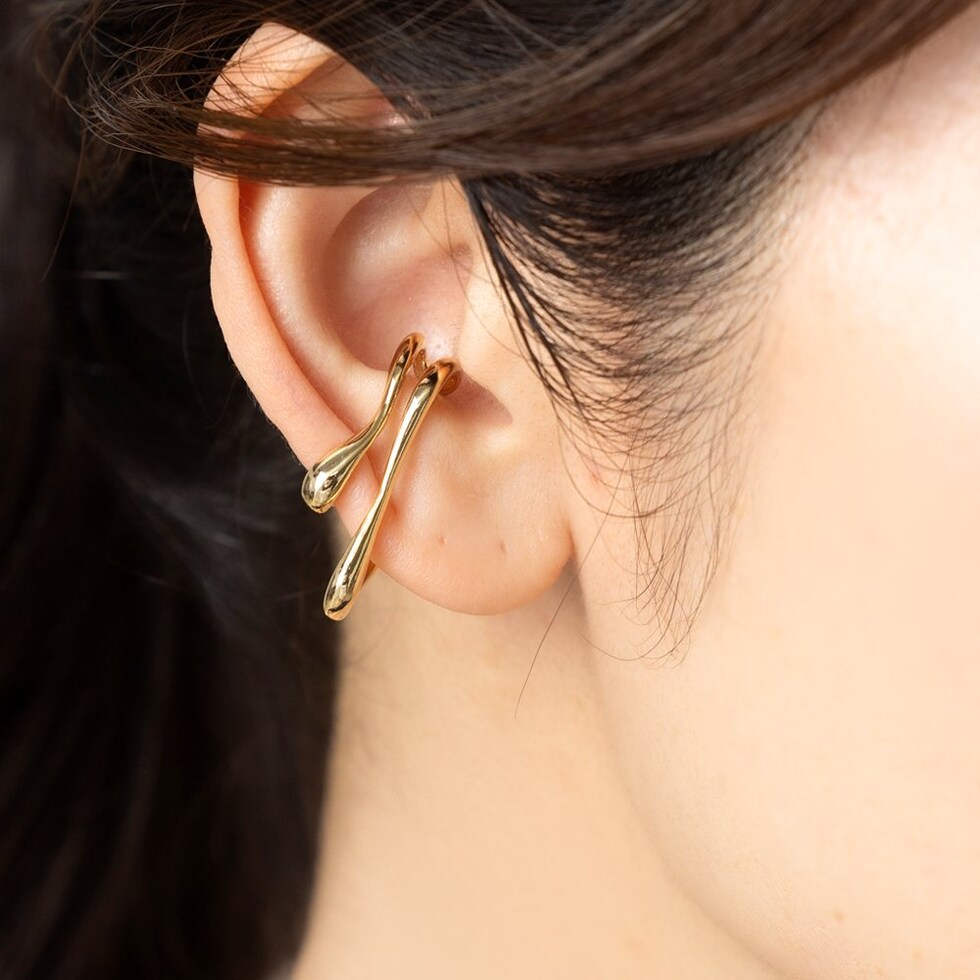 ニュアンスたっぷりのダブルラインがこなれた雰囲気の片耳用イヤーカフ。流れるようなレイヤード風のデザインが耳元にオトナな印象をプラスします。程よく存在感のあるサイズ感で、主張しすぎず周りと差のつくアイテム。