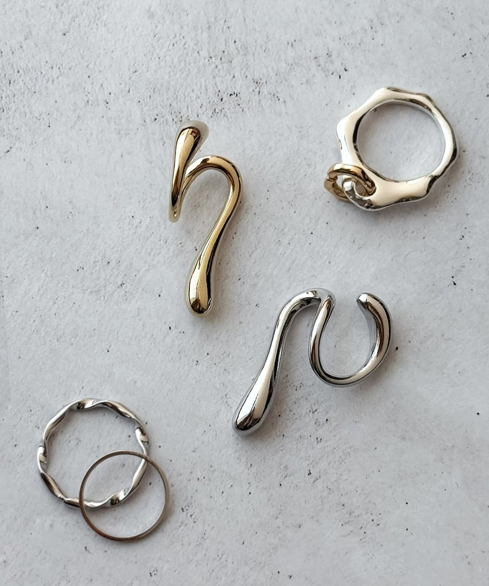 イヤーカフ レディース イヤカフ 片耳用 ぷっくり ニュアンス ライン レイヤード風 メタル 艶 ドロップ cream dot ゆうパケット [シルバー_ワンサイズ]