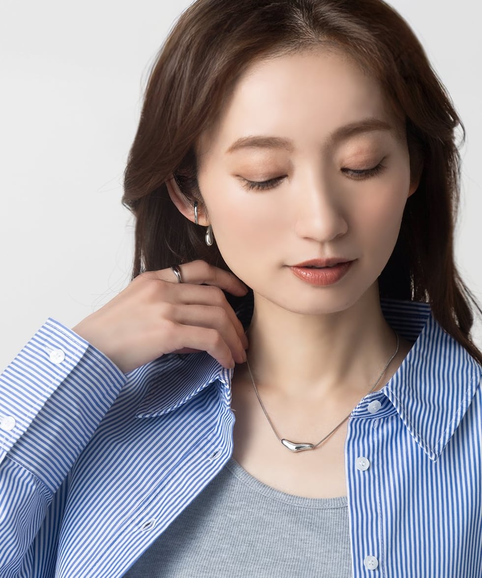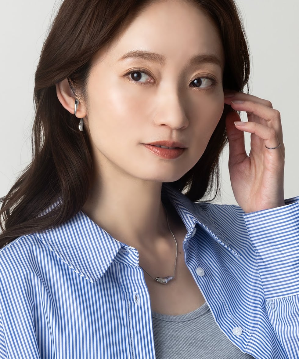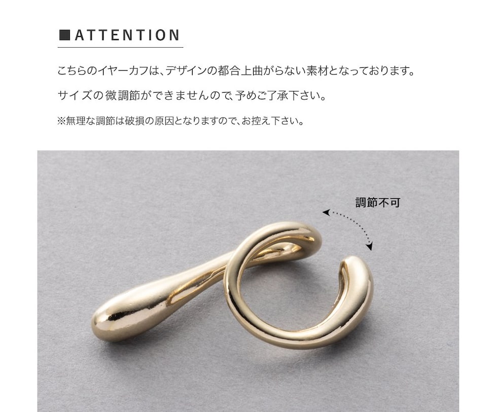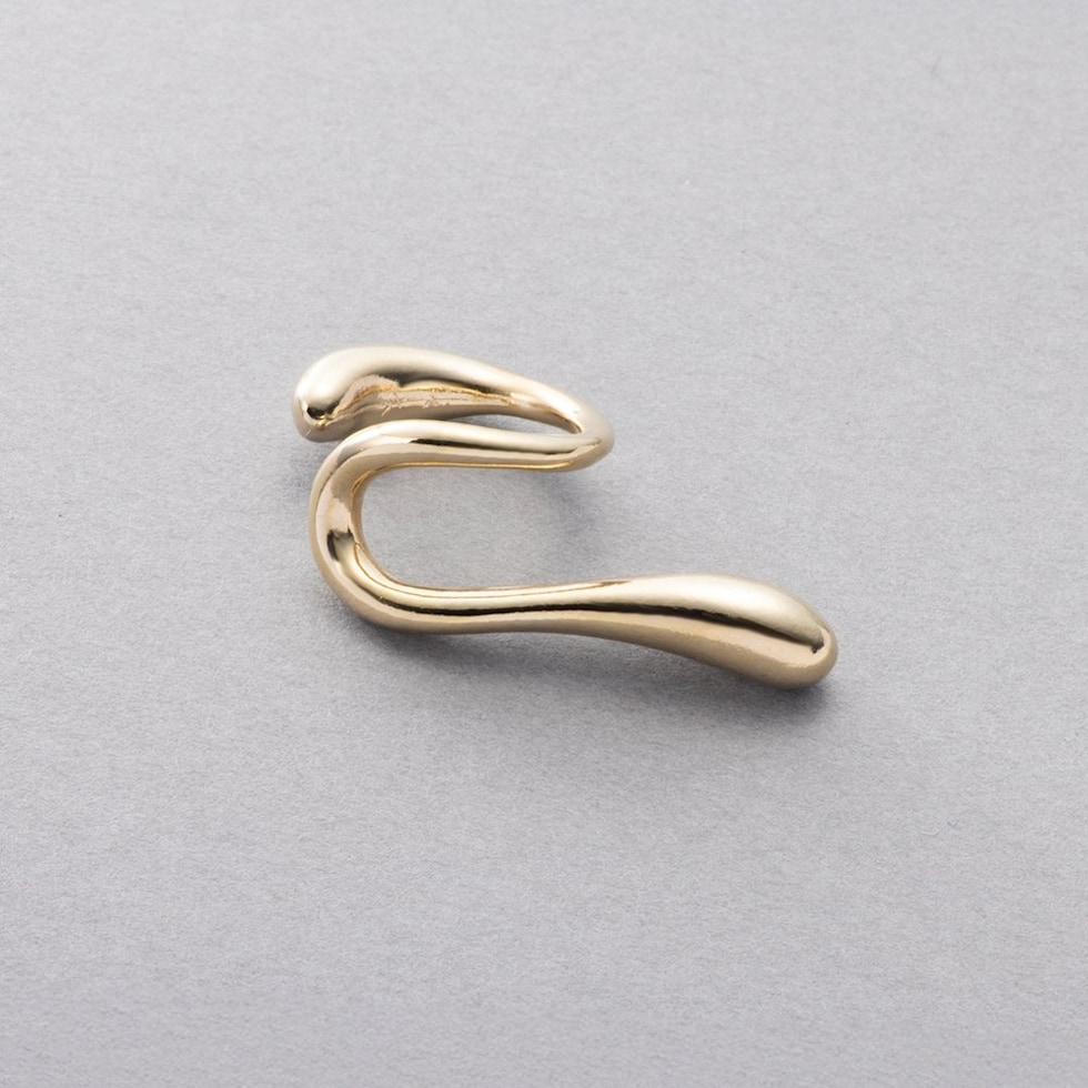 レイヤードのようなデザインの片耳用イヤーカフ。耳の後ろから覗くドロップがニュアンスたっぷりで周りと差のつくデザイン。